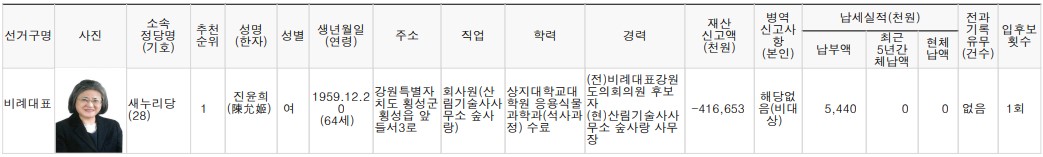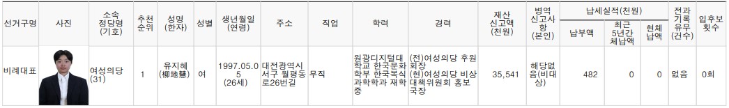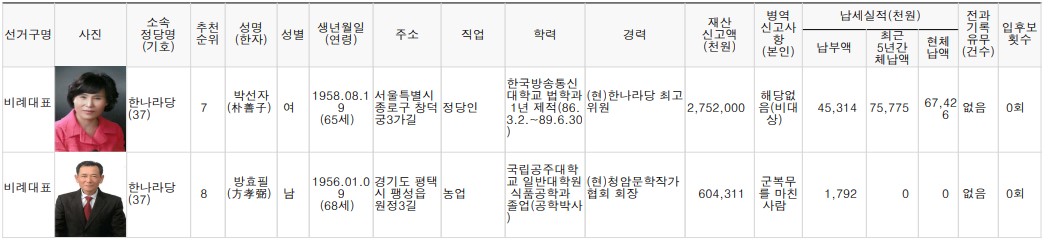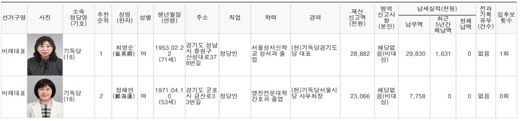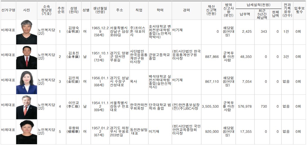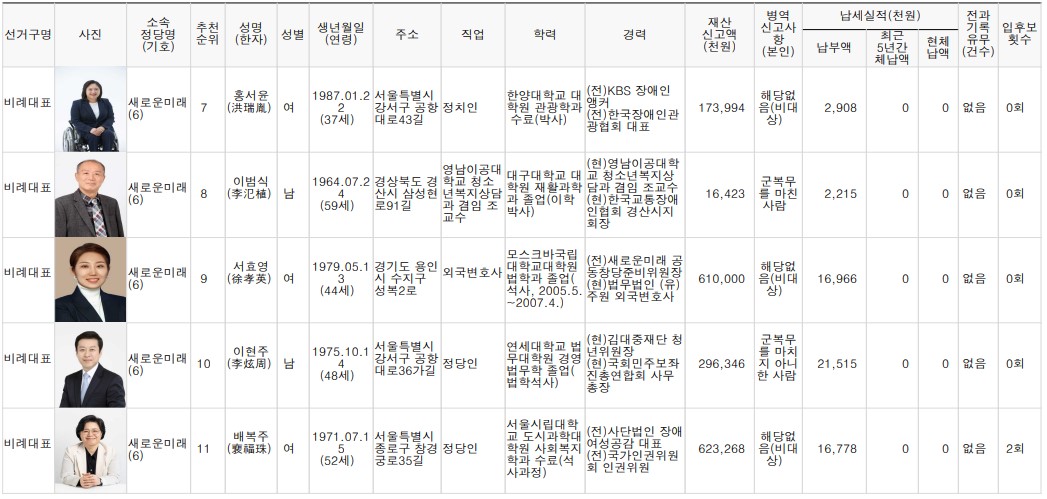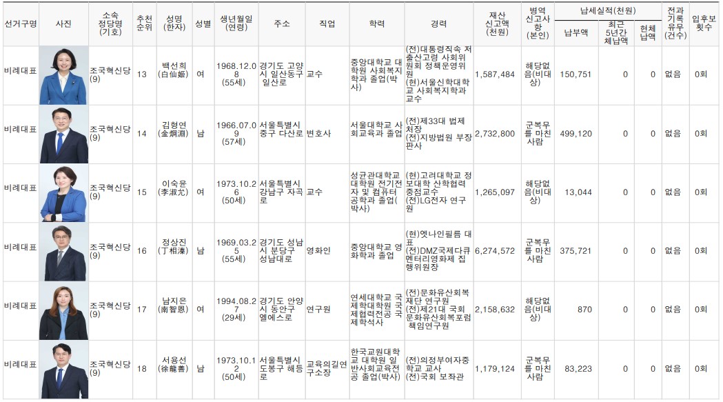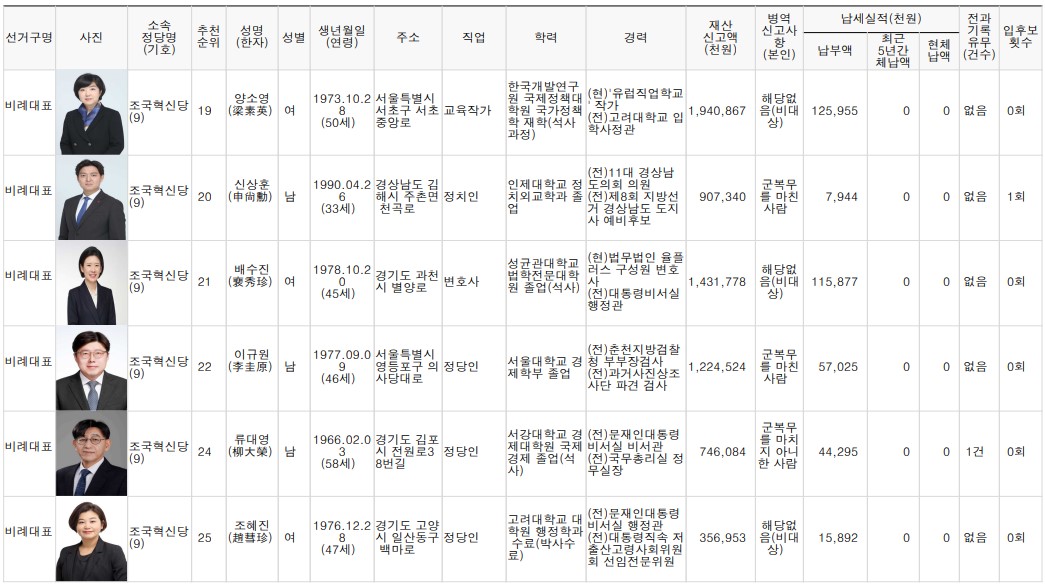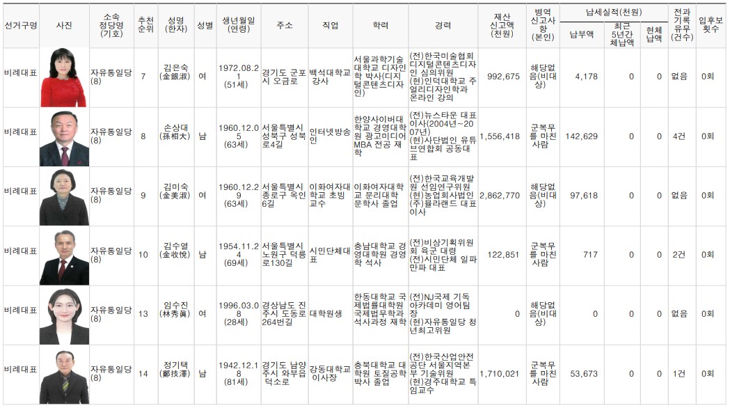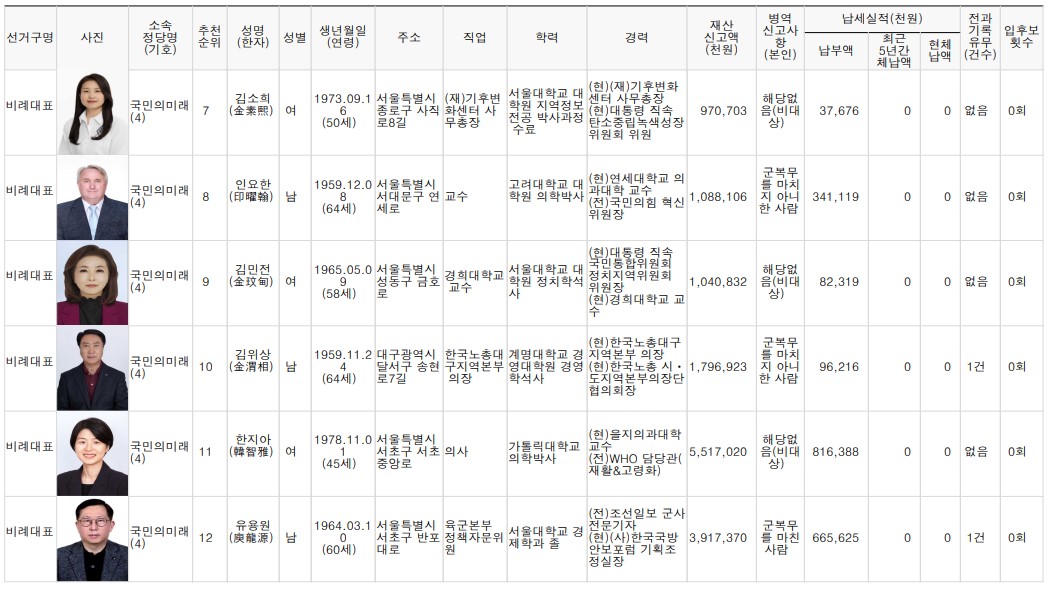 제22대 비례대표 국회의원선거 후보자 명단 본문