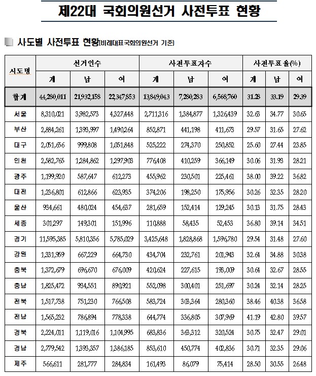 #사전투표 #사전투표율 #제22대 국회의원선거 #중앙선관위 #31.28%