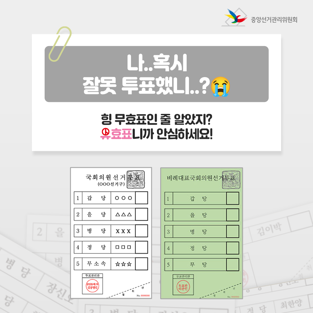 4월 10일 국회의원선거 투표 절차, 나 혹시 잘못 투표했나? 유효투표 사례 본문