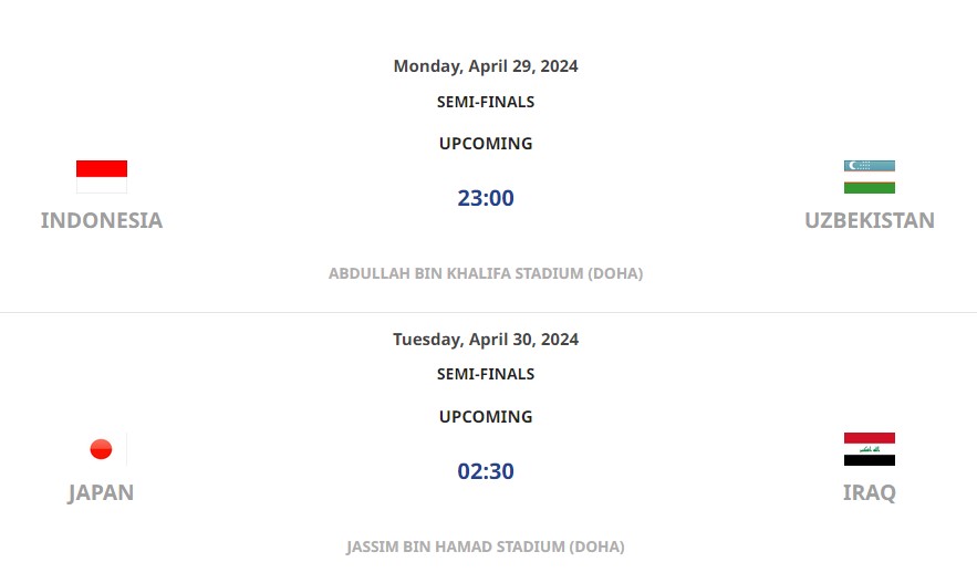 2024 AFC U-23 카타르 아시안컵 4강이 일본, 인도네시아, 우즈베키스탄, 이라크로 확정되었다.