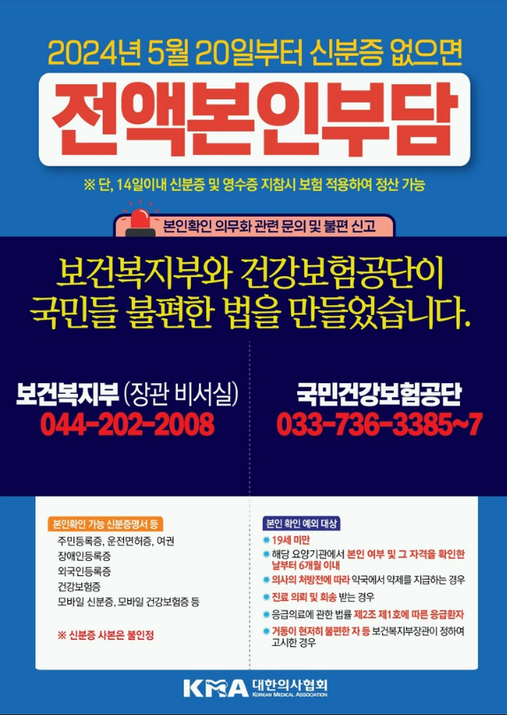 정부가 건강보험 도용을 막기위해 5월 20일부터 병원 방문시 신분증을 제시하는 것을 시행하고 있다.