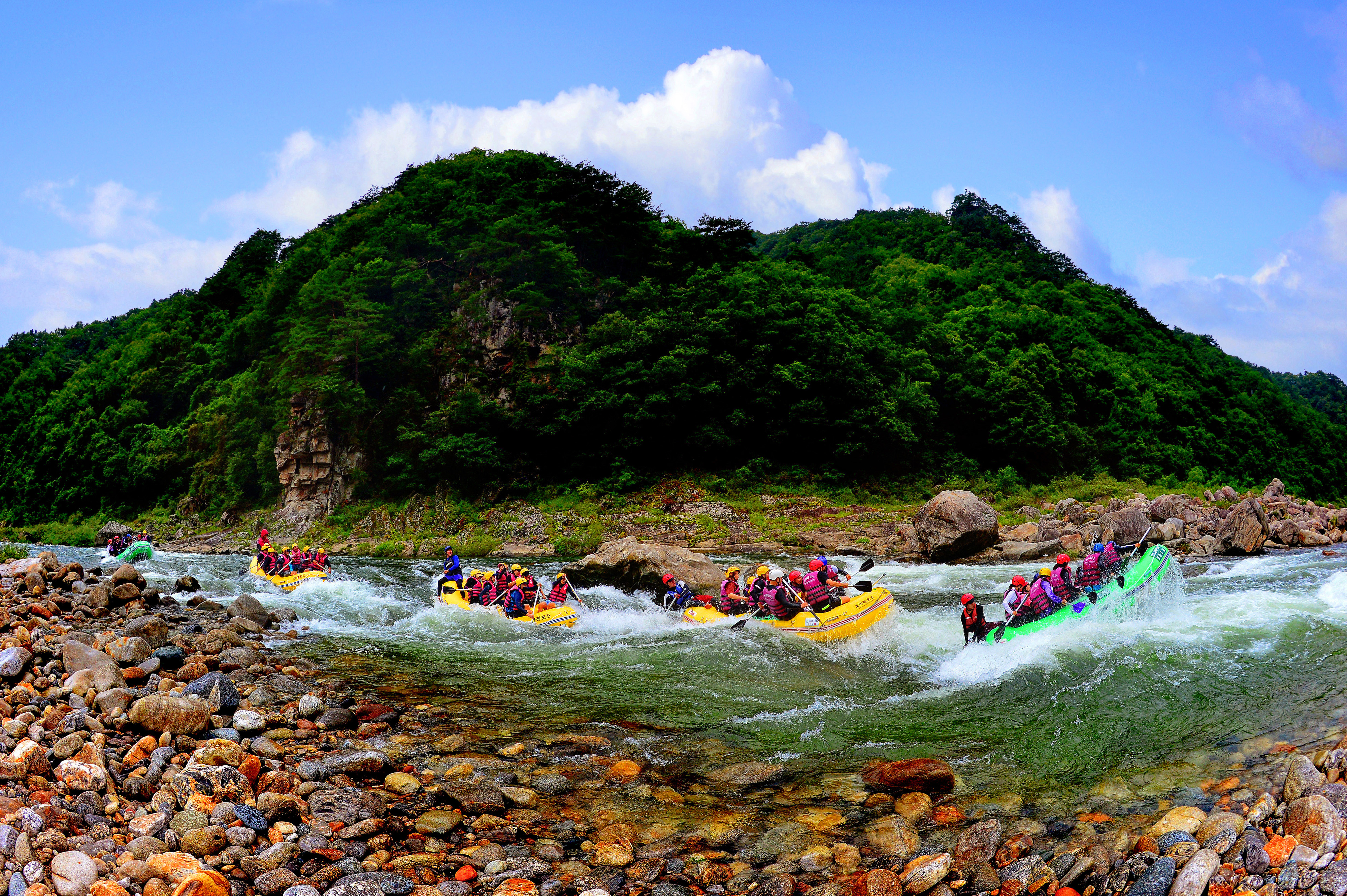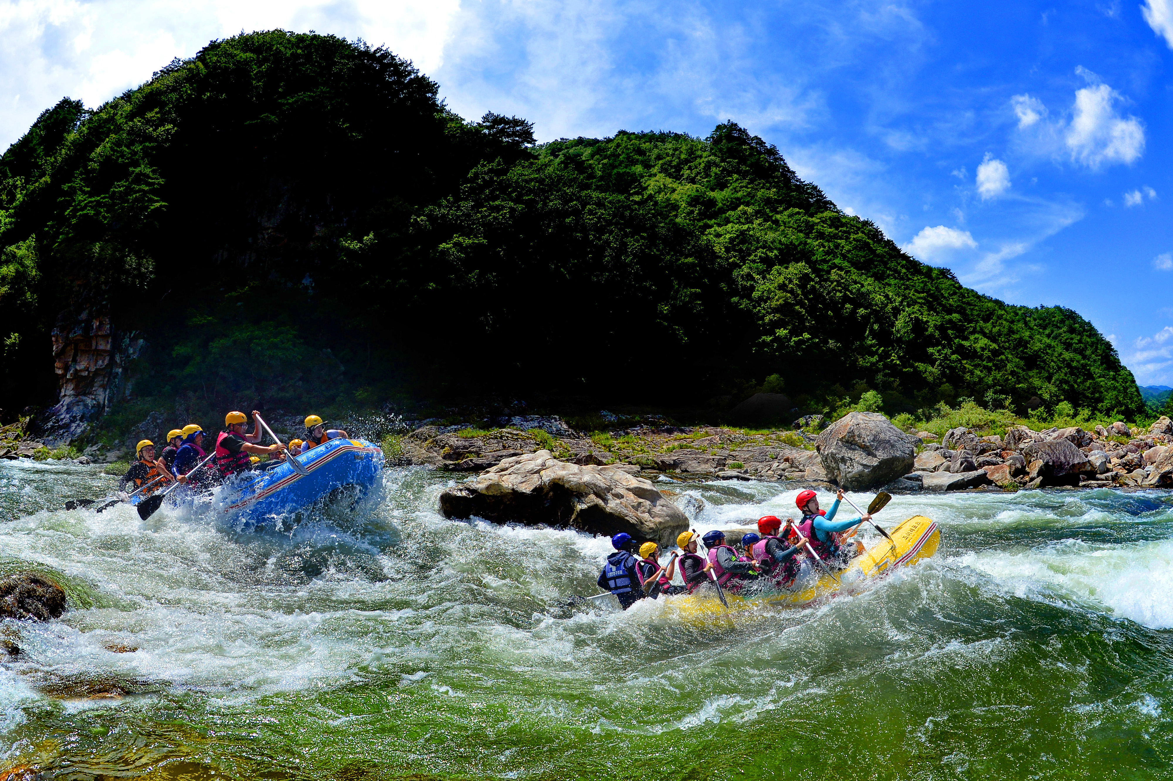 시원한 물살을 가르는 인제 내린천 래프팅의 계절