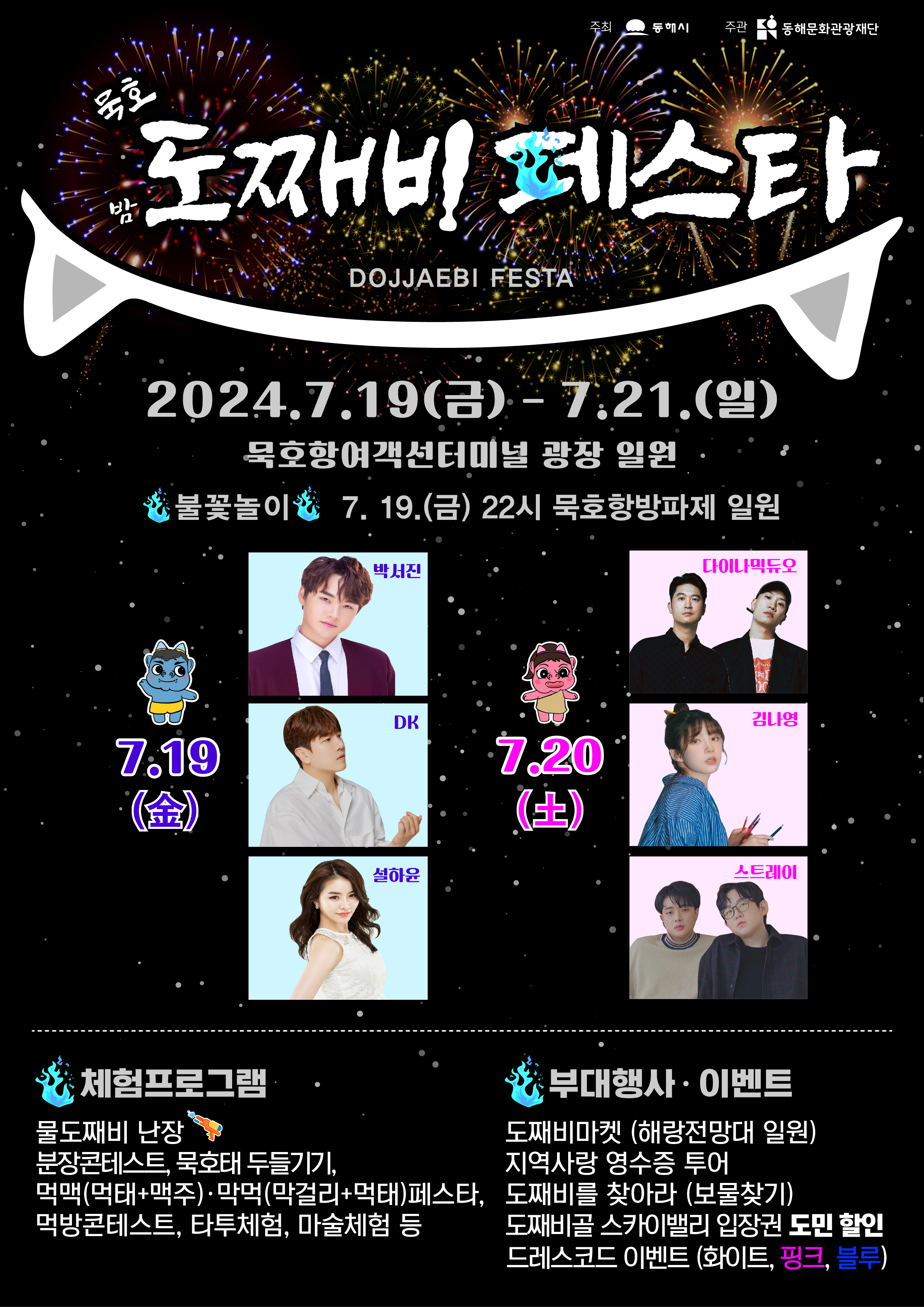 또한, 같은 기간에 오후 6시부터 10시까지 묵호 수변공원에서 해랑 전망대까지 도째비 야시장도 열린다.