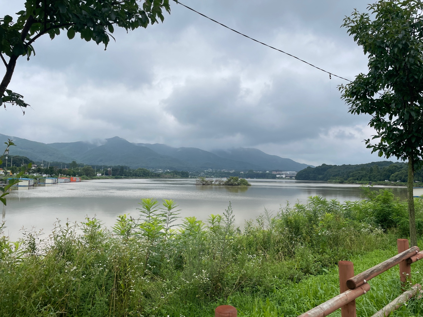 앞에는 호수가 있고, 불판이 널찍해서 너무 좋아요. 한마리 시키면 성인 4명 충분해요