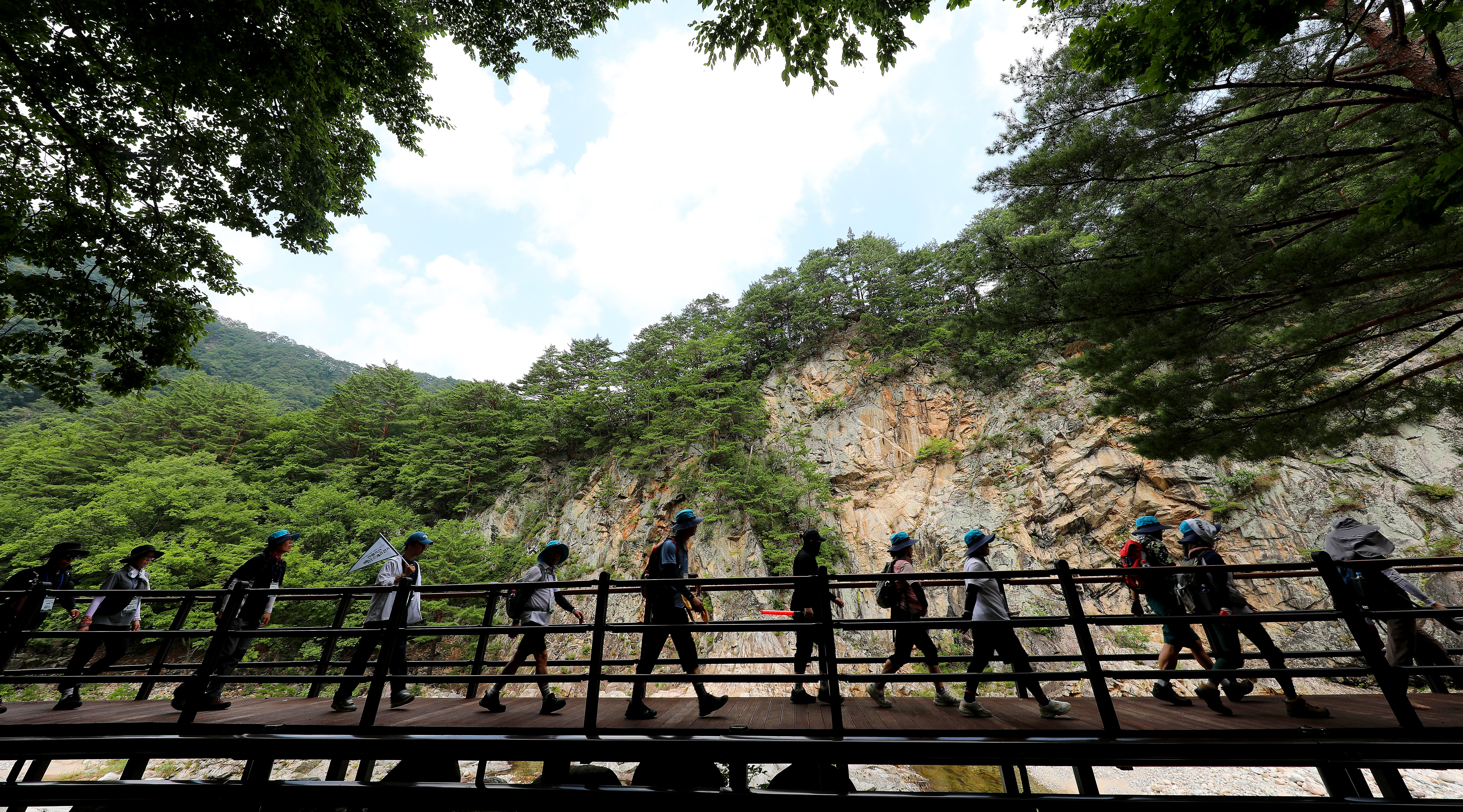 지난 8월 11일 인제군 백담계곡 일원에서 개최된 ‘백담 순례길 걷기’ 참여자들이 즐거운 시간을 보내고 있다.