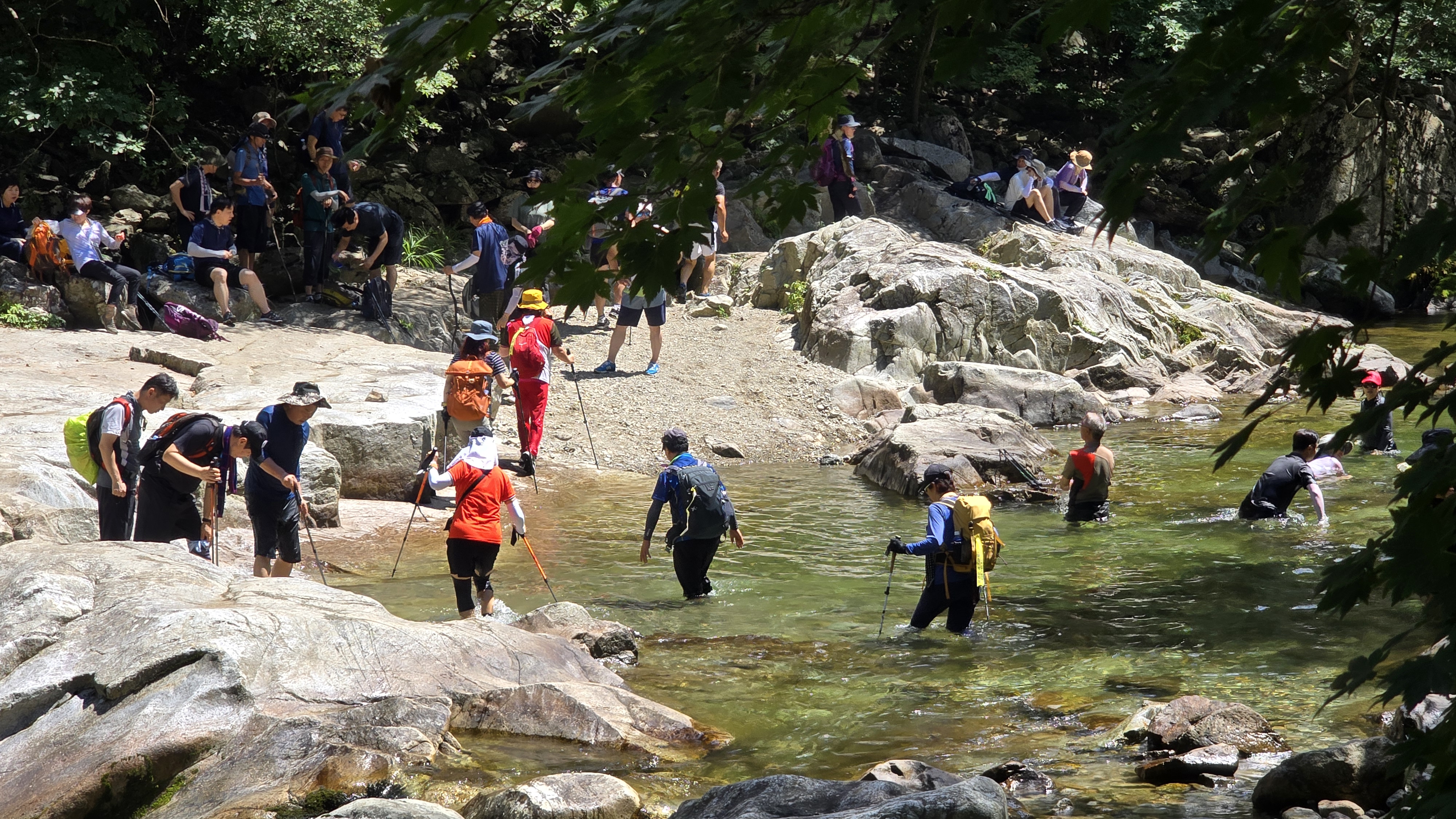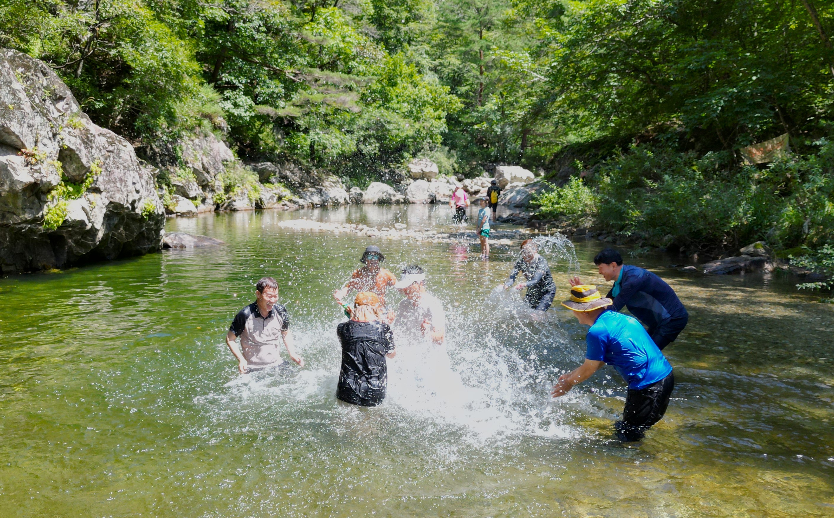 휴가철 막바지를 맞아 인제 기린면 일원의 아침가리 계곡에서 관광객이 즐거운 시간을 보내고 있다.