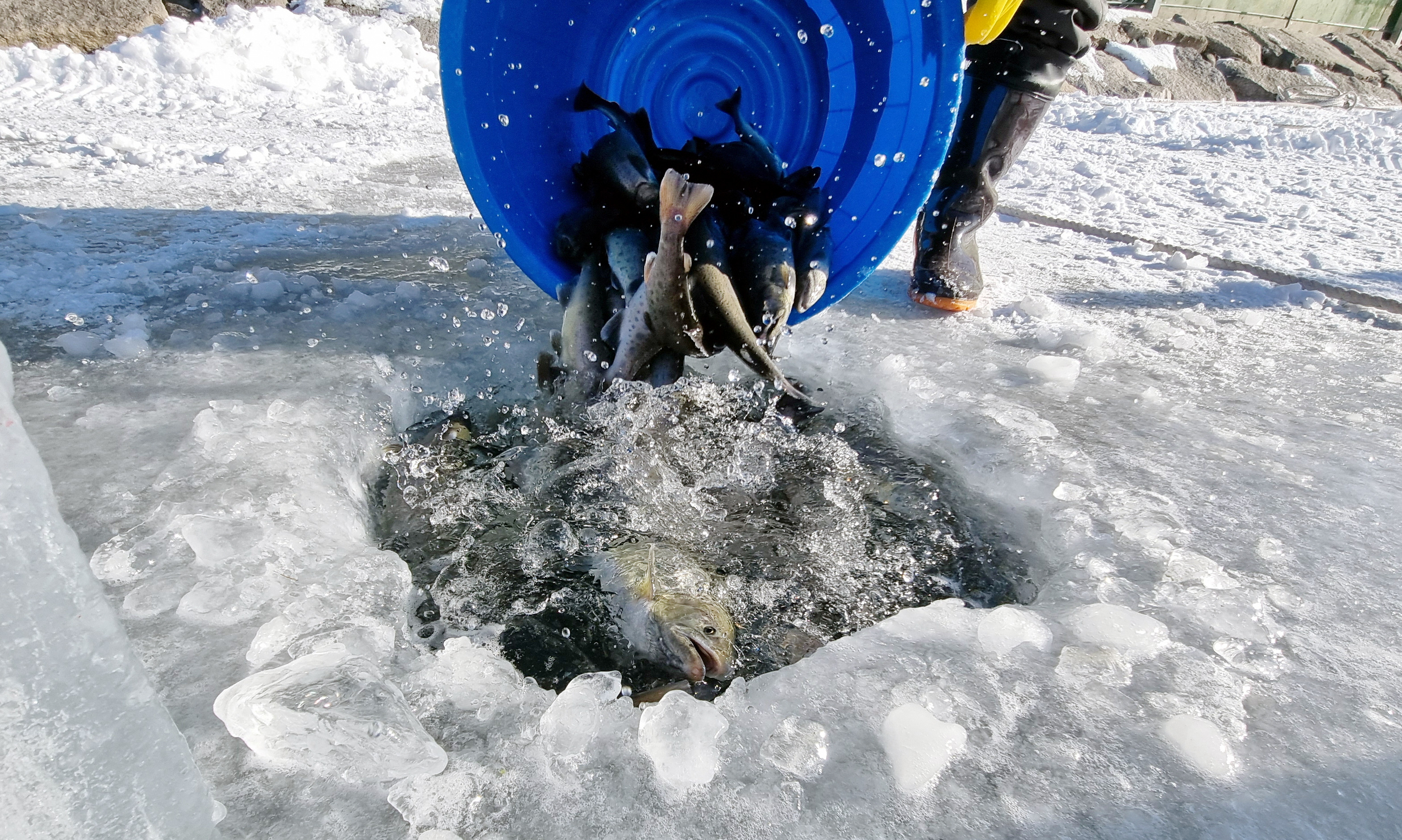 2025 화천산천어축제...얼음낚시터 산천어 투입