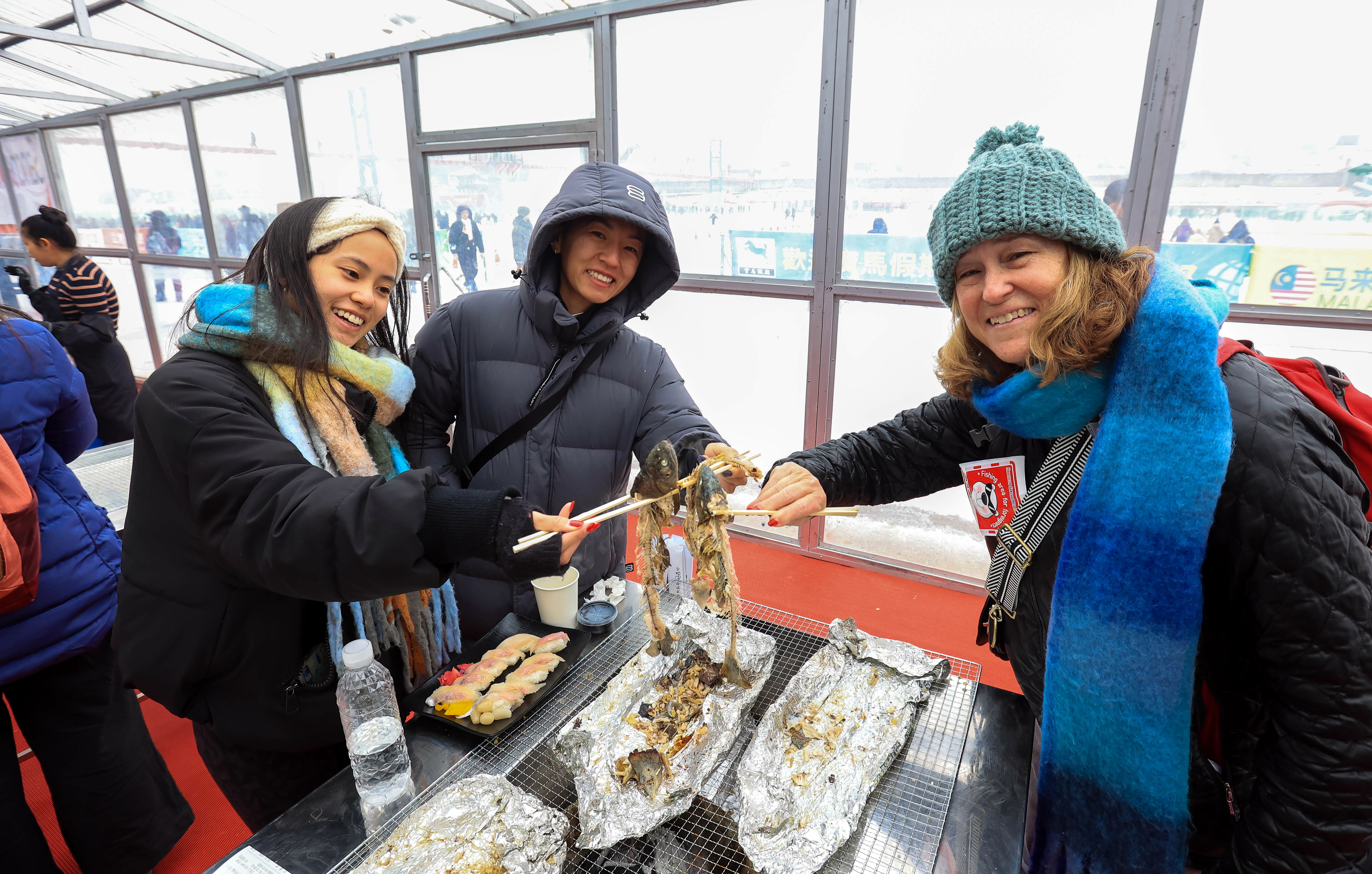 눈내리는 화천산천어 축제...축제 즐기는 외국인 관광객 본문