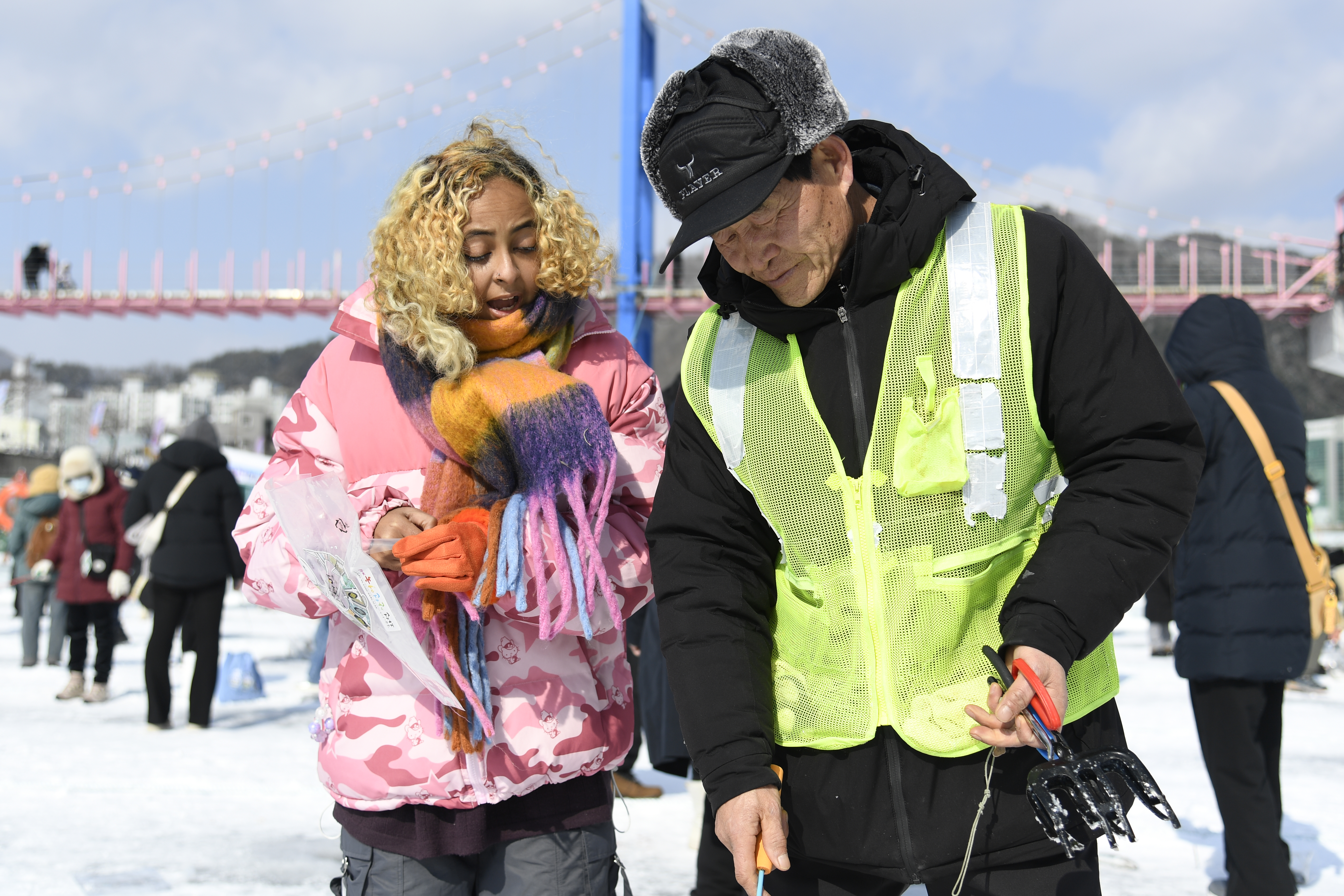 29일, 설날임에도 불구하고 수많은 외국인 관광객들이 2025 화천산천어축제장을 찾아 산천어 얼음낚시를 즐기고 있다.