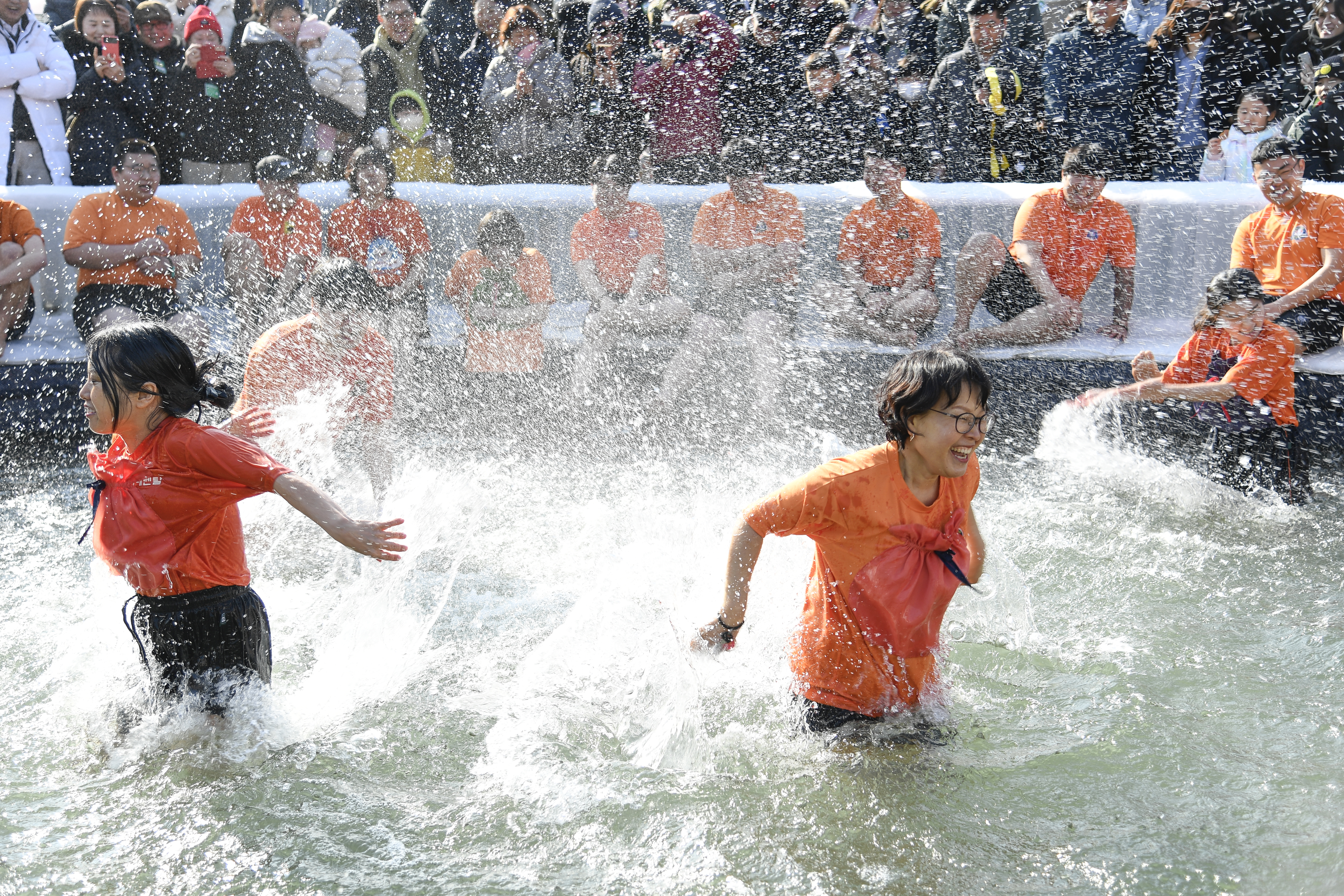<사진=화천군 제공> 폐막을 하루 앞둔 1일, 2025 화천산천어축제장을 찾은 관광객들이 맨손잡기, 스케이트 체험에 참여해 축제를 온몸으로 만끽하고 있다.