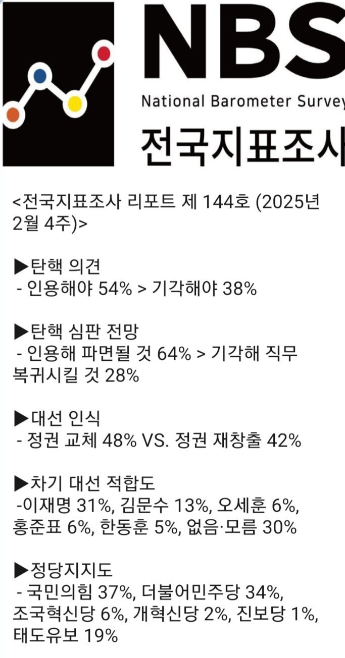 전국지표조사(NBS) 2월 4주차 여론조사 본문