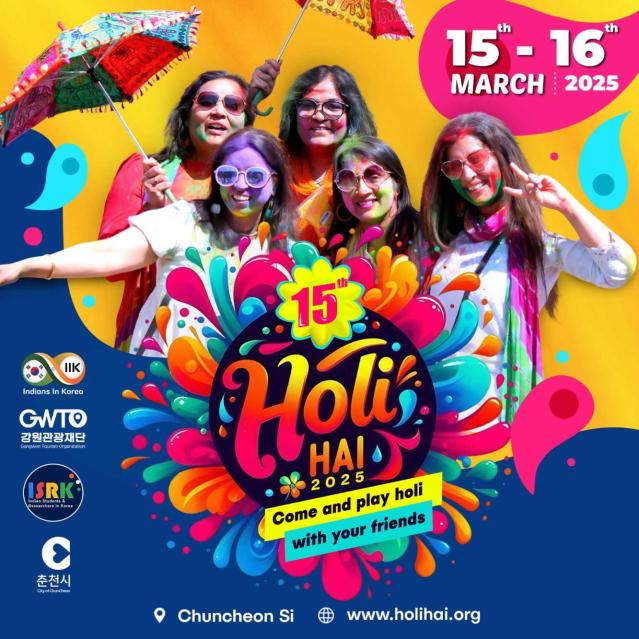 강원관광재단(이하 ‘재단’)과 춘천시는 오는 3월 16일(일), 춘천 베어스 호텔 앞 수변공원에서 2025 인도 홀리해이 페스티벌을 개최한다고 밝혔다.