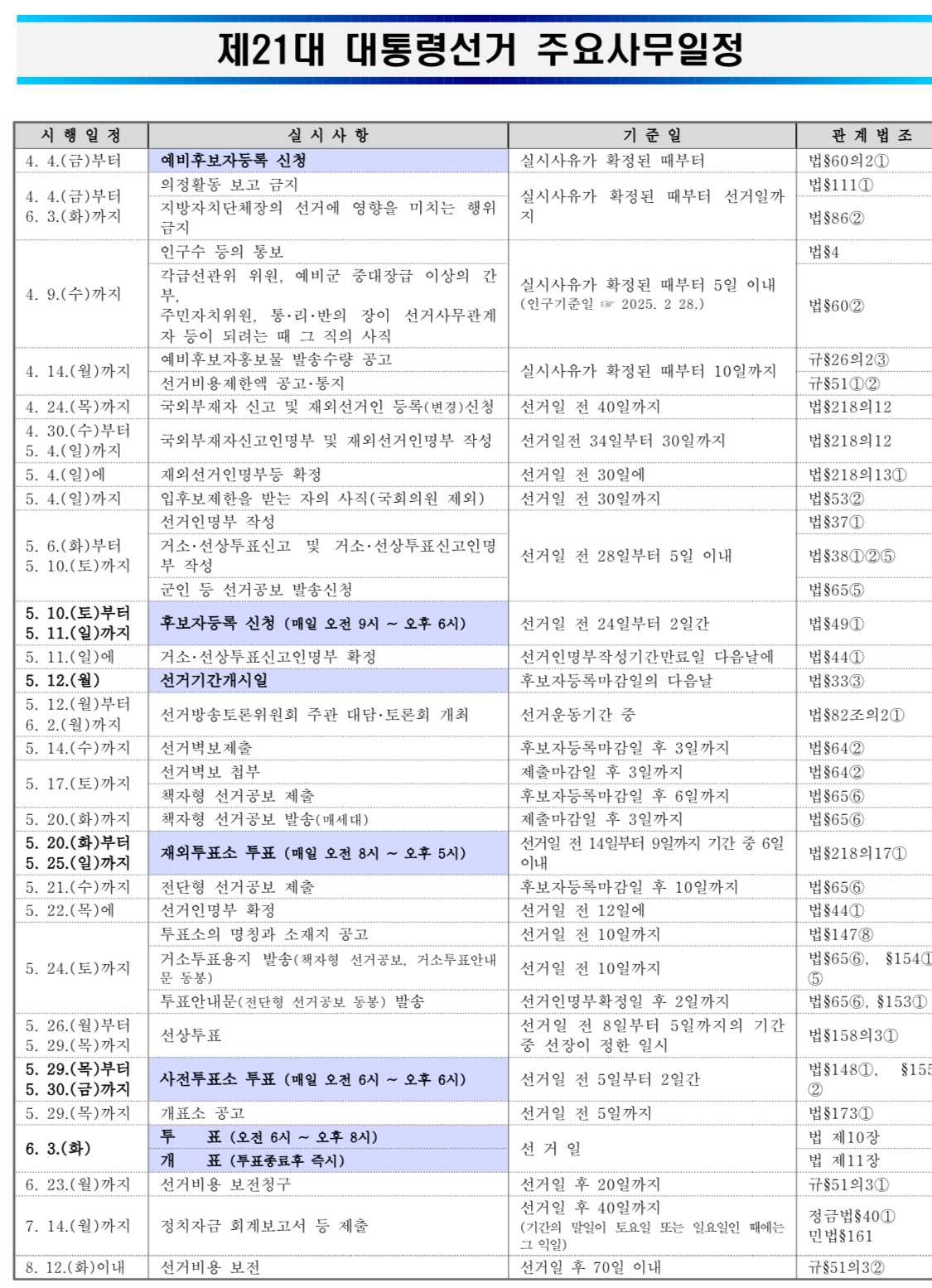 제21대 대통령선거 주요사무일정 본문