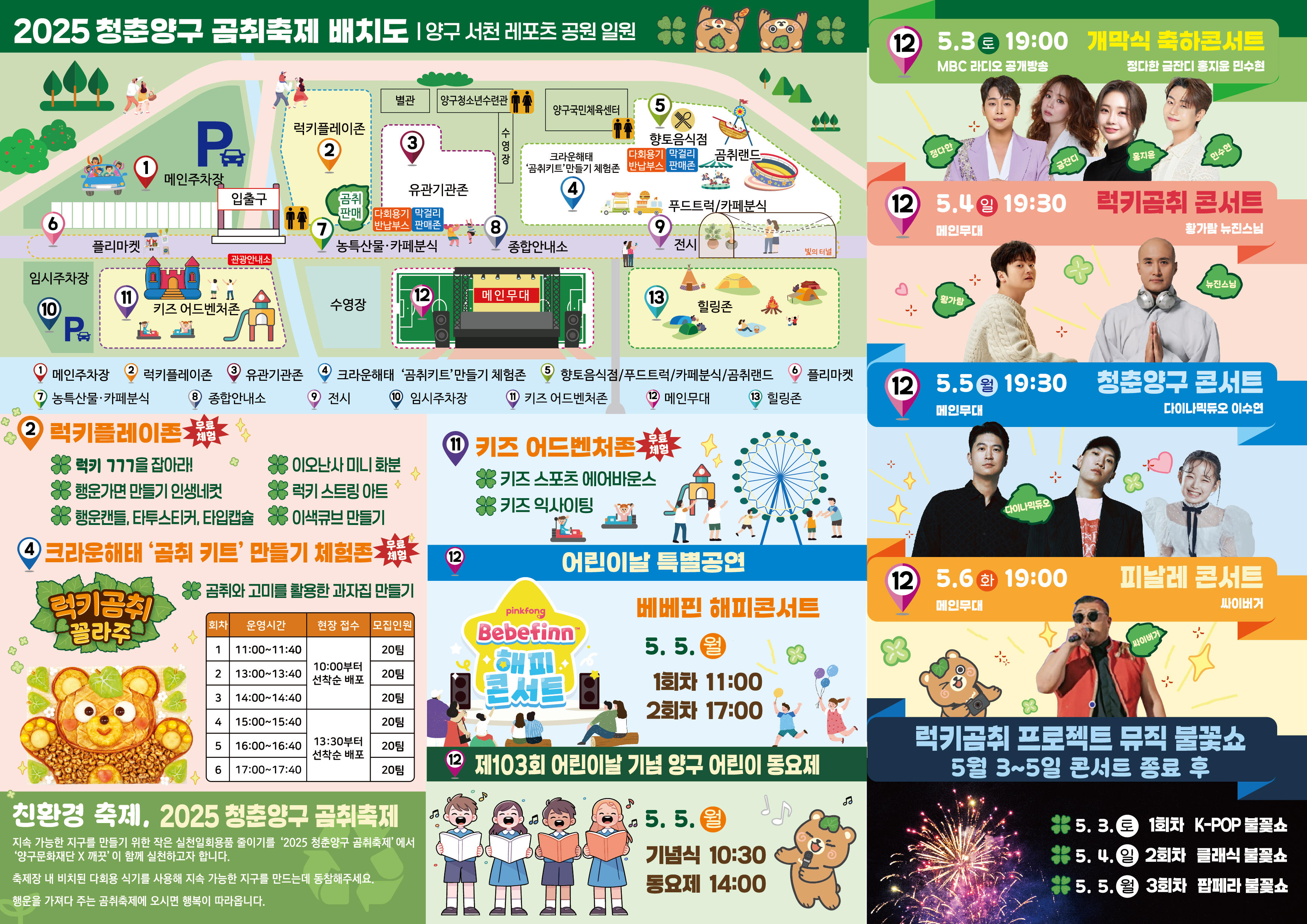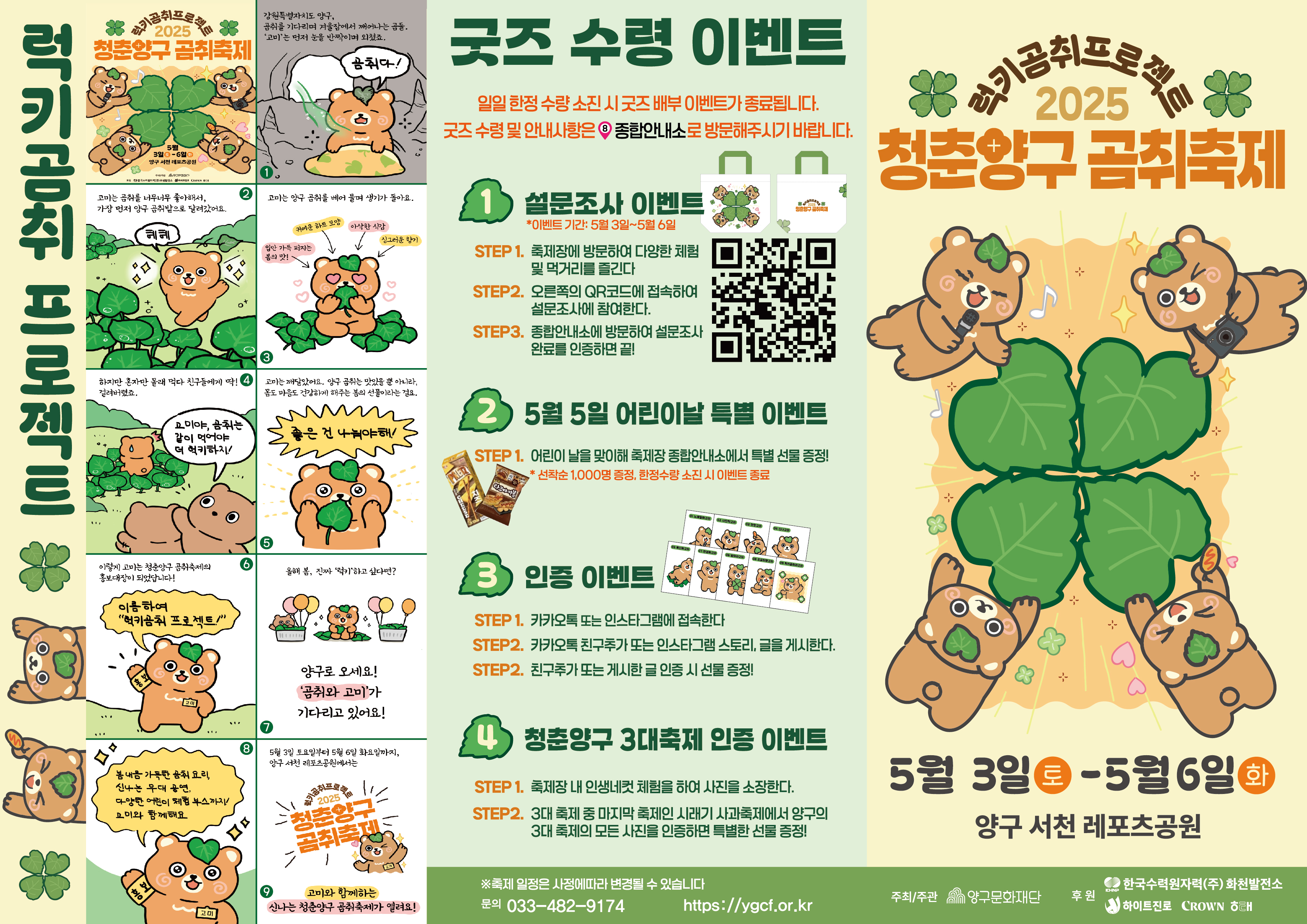 어린이날을 맞아 가족 단위 방문객을 위한 풍성한 프로그램도 준비된다. 키즈 어드벤처존에서는 에어바운스, 키즈 익사이팅 등을 즐길 수 있으며, 곰취를 활용한 무료 과자집 만들기 체험인 ‘곰취 키트’ 체험존도 매일 운영된다.