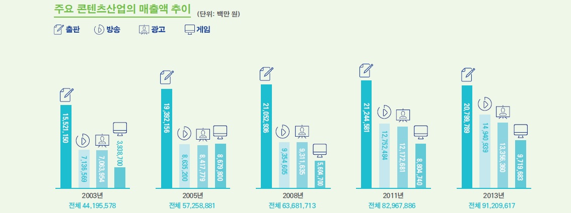 - 문화산업 GDP 기여율: 3.3% (日의 1/3 수준)
