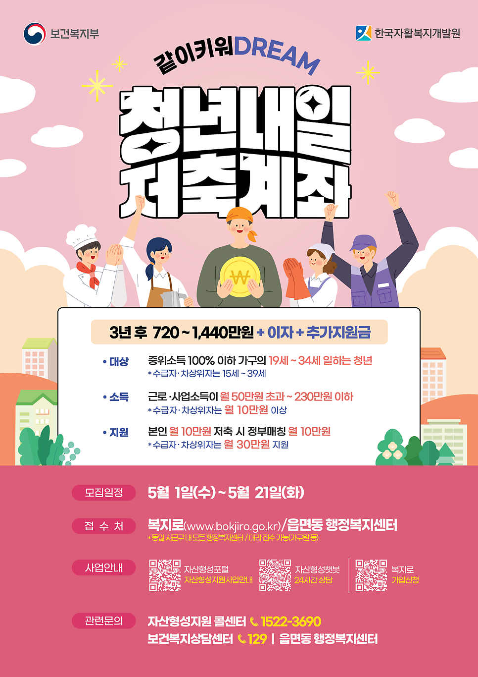 3년간 저축을 유지하면 최대 1,440만 원(본인 360 + 정부 1,080)까지 받을 수 있습니다.