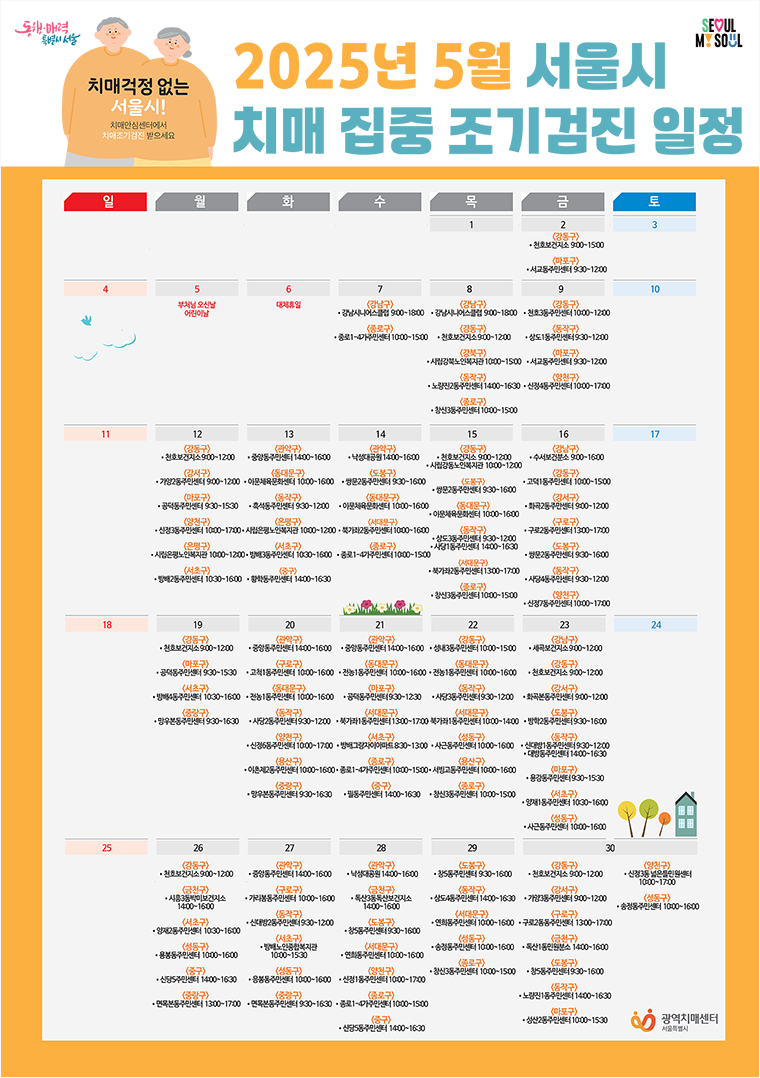 서울시가 5월 가정의 달을 맞아 25개 자치구와 함께 ‘치매 집중 조기 검진’을 실시한다.