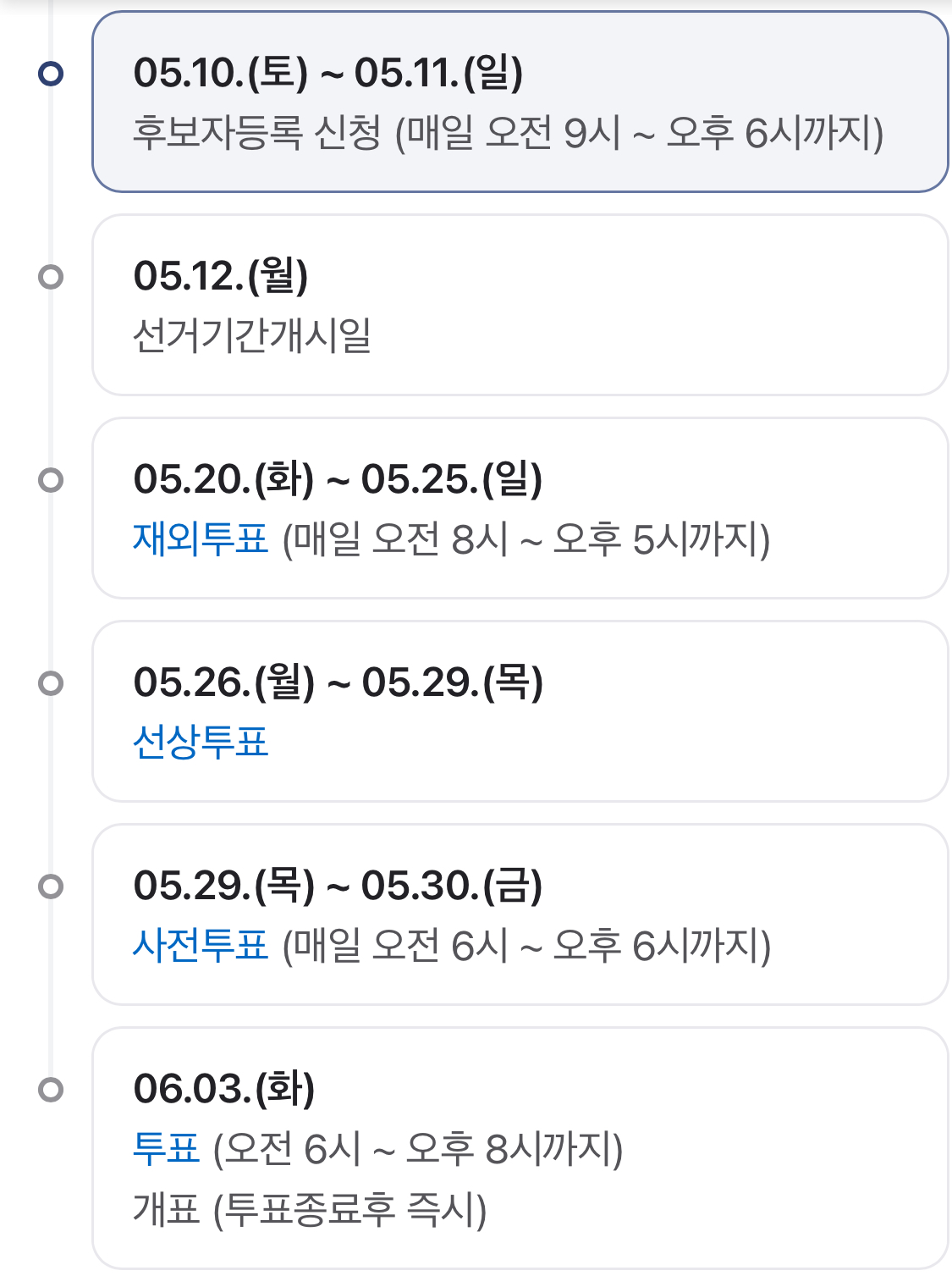 5년 만에 돌아온 대통령선거, 이제 레이스가 본격적으로 시작된다. 제21대 대통령선거의 후보자 등록이 5월 10~11일 양일간 진행되며, 이후 5월 12일부터 공식 선거운동이 시작된다. 선거일은 6월 3일 화요일, 유권자들의 손에 대한민국의 미래가 맡겨진다. 이번 글에서는 후보 등록 이후의 선거일정과 절차를 한눈에 정리해본다.