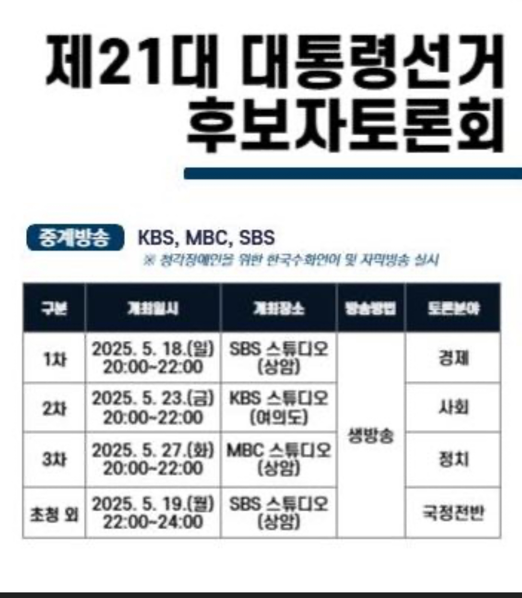 | 제21대 대통령선거 후보자 첫 TV토론회 개요:이재명,김문수,이준석, 권영국 (0) | 2025.05.13 |