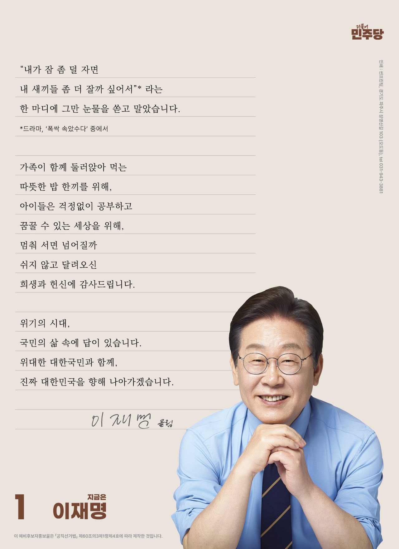 지금은 이재명 : 제21대 대통령 선거 더불어민주당 예비후보자 홍보물 본문