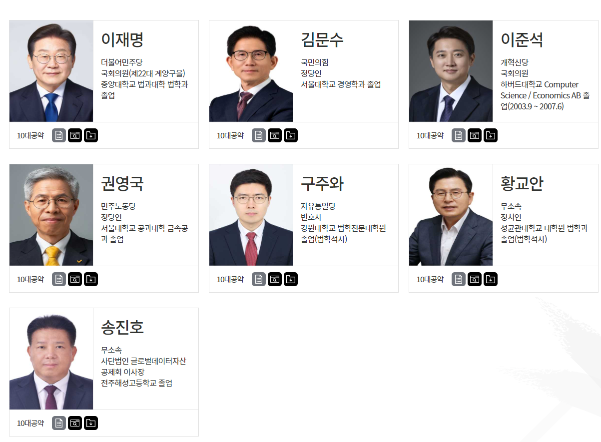 후보별 공약·입장 연계 간략 분석