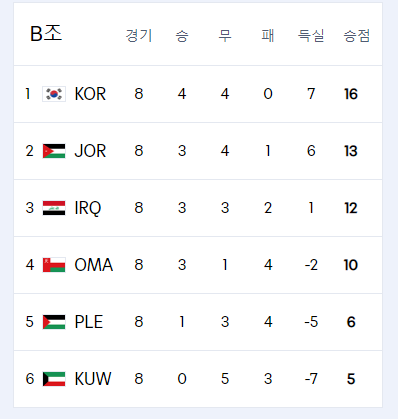 - 요르단이 남은 경기에서 승점 추가 시 본선 직행 시나리오는?