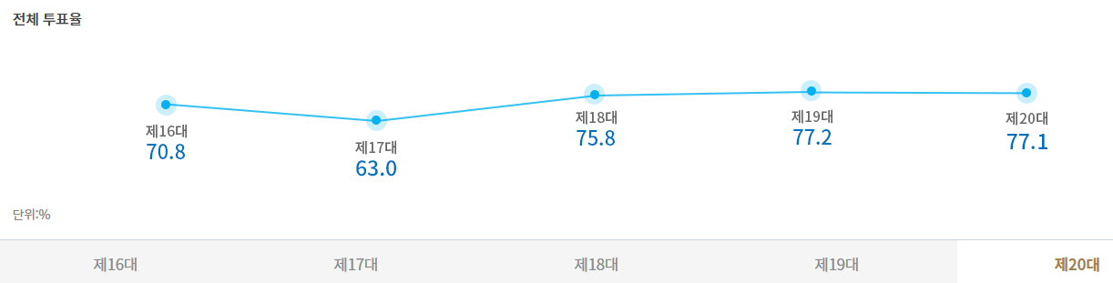 | 제19대 (2017) | 26.06% | 77.2% | +51.14%p |