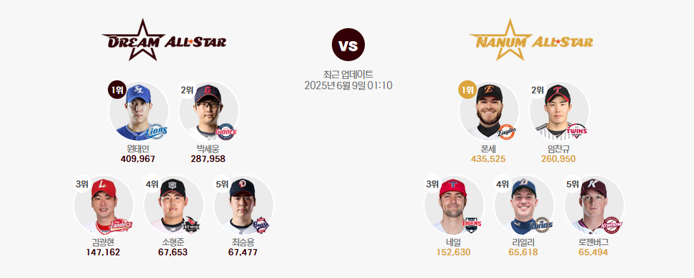 [세널리 KBO 리포트] 2025 올스타전 팬투표 최신 순위 총정리 본문