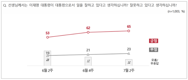 2025년 7월 2주 NBS 여론조사 – 이재명 대통령 긍정 65%(+3%p) | 세널리 주간여론분석 본문