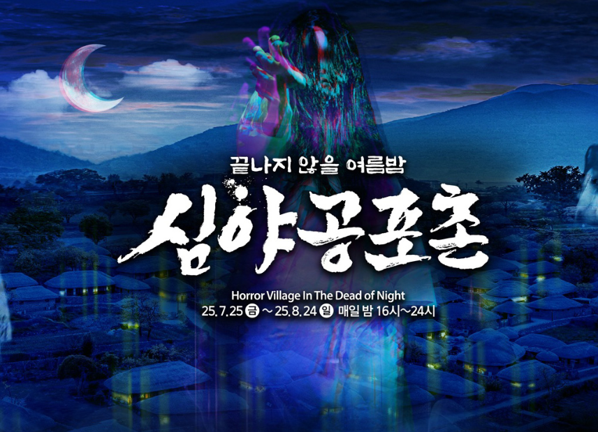 올여름 가장 강력한 공포를 마주할 준비가 되었는가? 한국민속촌이 선보이는 국내 최대 규모의 여름 공포축제 ‘심야공포촌’이 다시 돌아왔다. 귀신이 출몰하는 조선 마을 한가운데서, 22종의 공포 콘텐츠와 함께 더위마저 잊게 만드는 오싹한 밤이 기다린다.