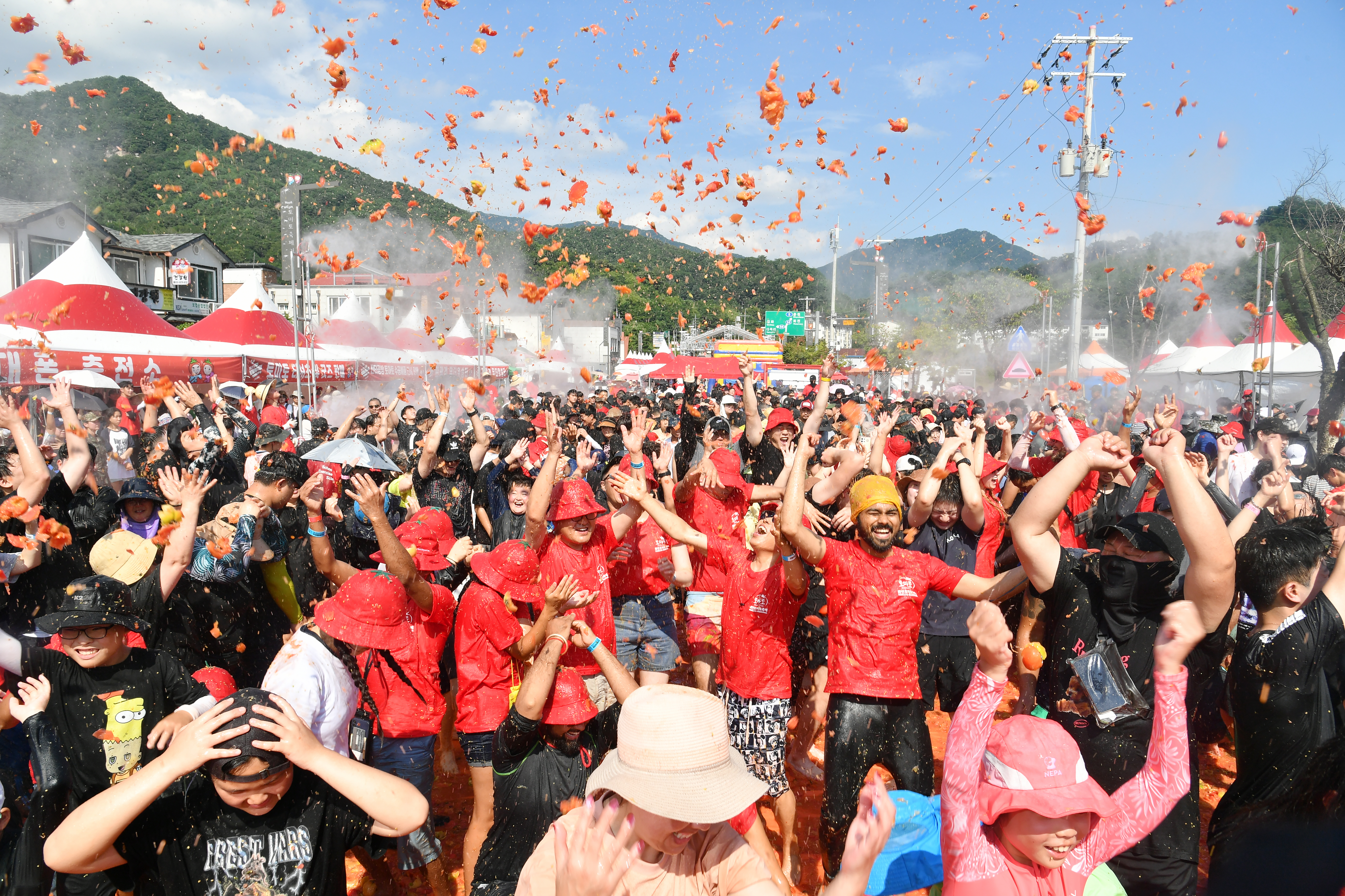 2025 화천토마토축제가 뜨겁고도 시원했던 사흘 간의 일정을 마무리했다. 화천군과 화천토마토축제추진위원회가 주최한 2025 화천토마토축제가 3일 폐막했다. 지난 1일 개막했던 축제에는 사흘 약 12만여명의 관광객들이 방문한 것으로 잠정 집계됐다. 외국인 관광객들도 1,800여명이 축제장을 찾아 화천토마토축제의 인기를 실감케 했다. 올해로 21회째를 맞이한 2025 화천토마토축제는 민관군과 기업, 소비자와 생산자 상생축제 아이콘이라는 평가를 다시금 확인시켰다. 축제 메인 프로그램인 ‘황금반지를 찾아라’이벤트는 축제의 백미답게 수많은 관광객을 끌어들이며 큰 인기를 끌었다.
