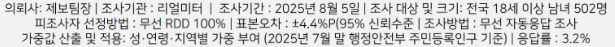 2. 여론조사 요약 – 리얼미터 8월 5일 조사