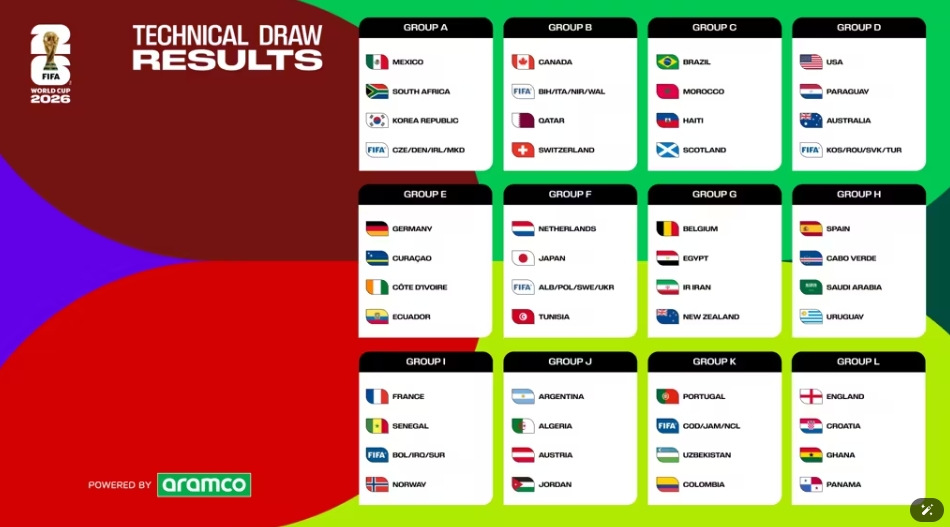 | K조 | 포르투갈, FIFA PO1, 우즈베키스탄, 콜롬비아 | 유럽·남미 강팀과 아시아 다크호스 |