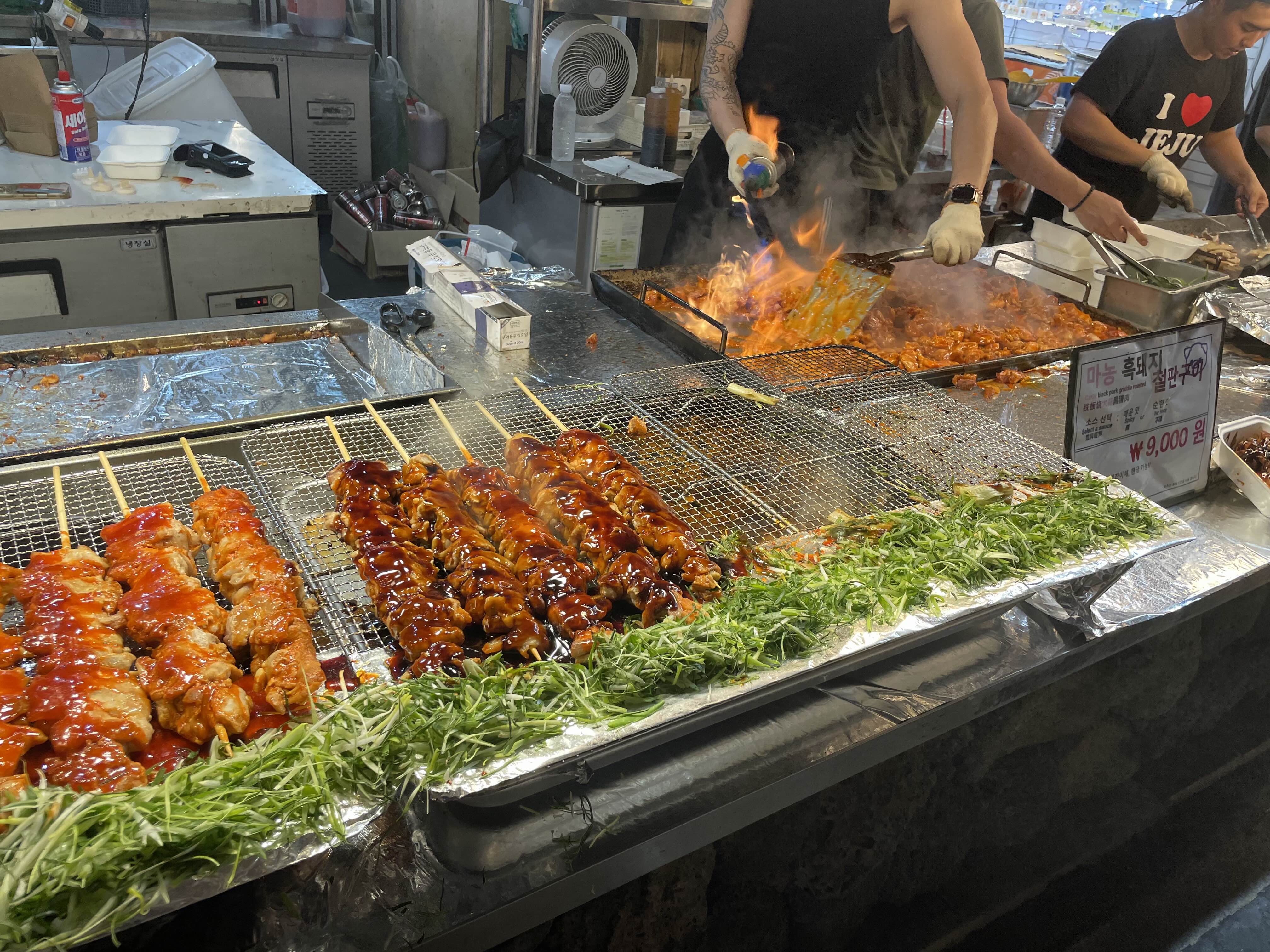 • 추천 루트: 흑돼지 꼬치 → 전복/해물 꼬치 → 오메기떡