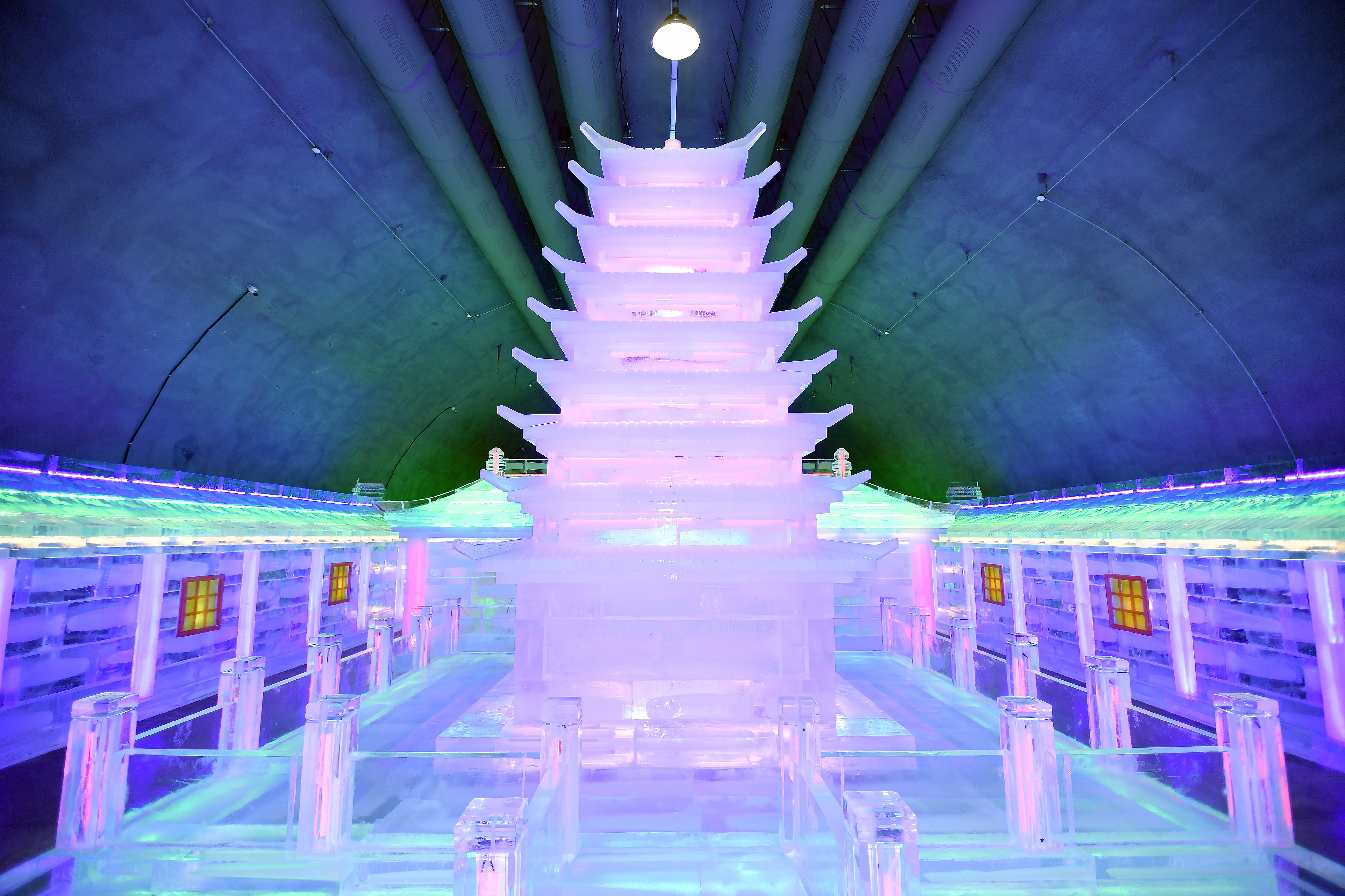 2026 얼음나라 화천산천어축제의 인기 프로그램 중 하나인 실내얼음조각광장이 20일 타빙식을 시작으로 운영에 들어갔다. 실내얼음조각광장에는 신라시대 황룡사지 9층 목탑을 비롯해 다양한 캐릭터와 세계 유명 건축물 조각 30여점이 전시된다.