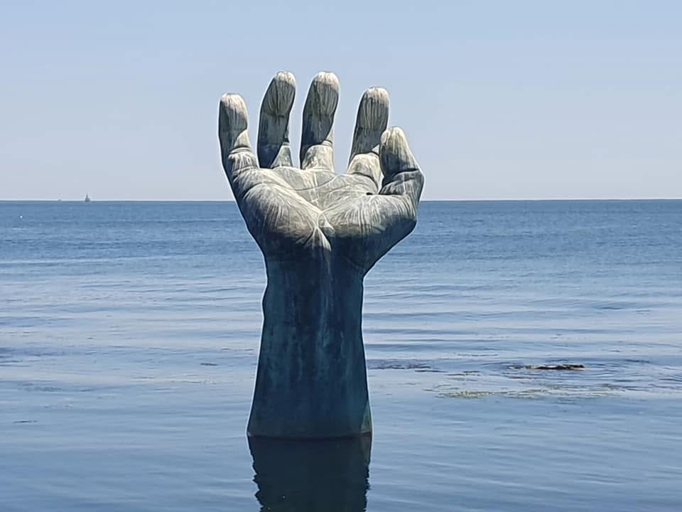 바다 위와 육지에 마주 보고 서 있는 ‘상생의 손’ 조형물은 새해 희망과 공존의 메시지를 상징한다.