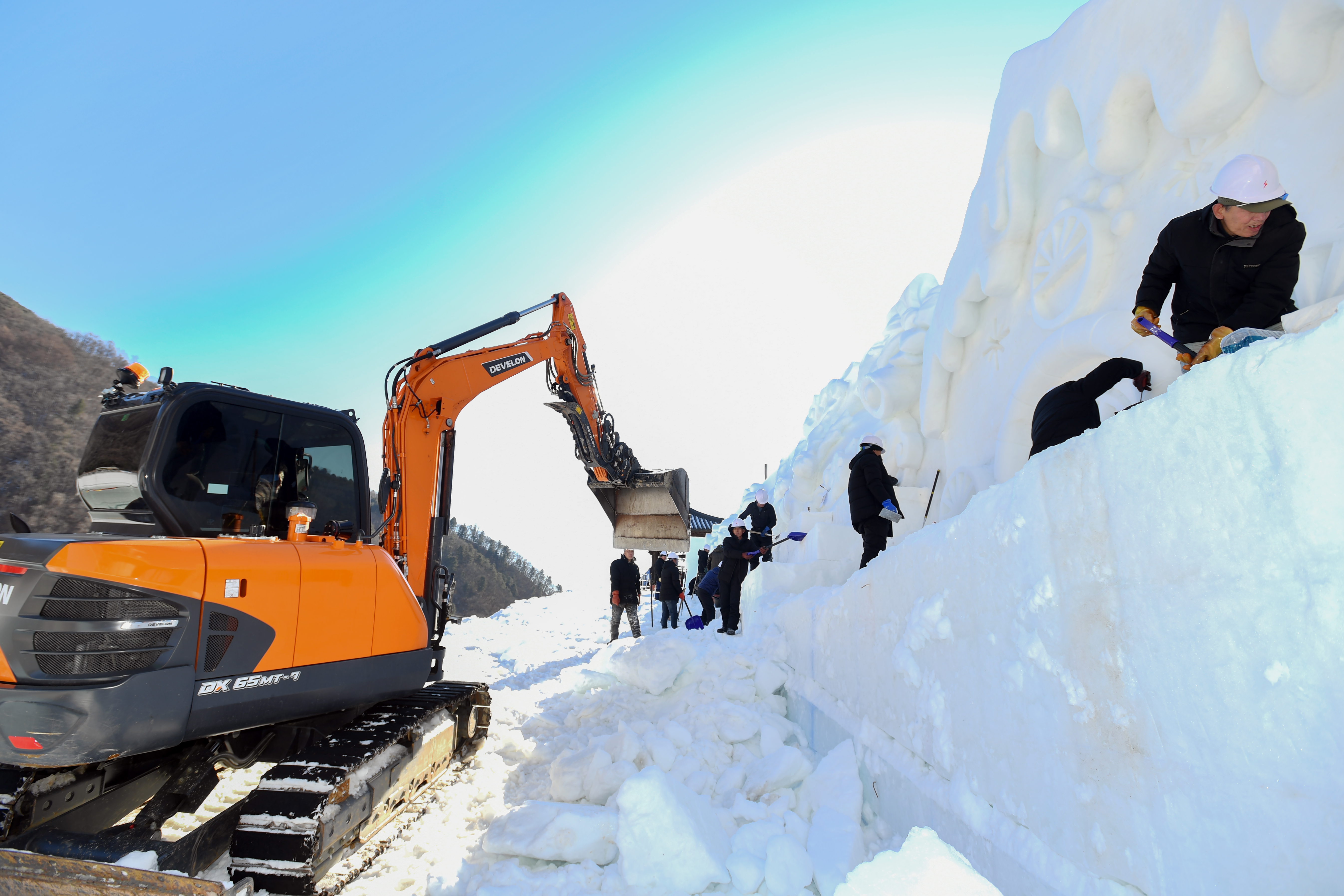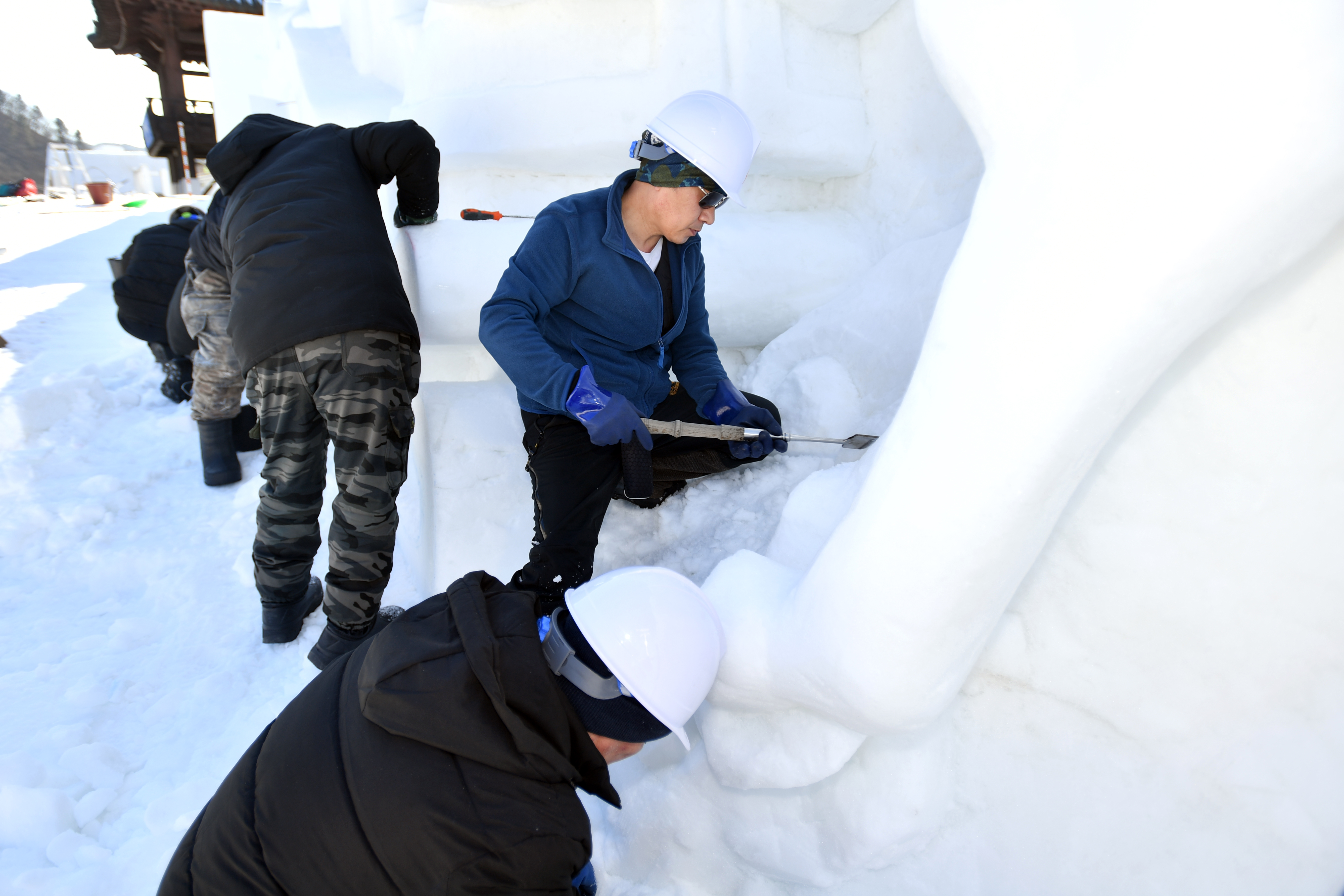 2025년 마지막 날인 31일, 화천군 화천읍 화천산천어축제장에서 축제 개막 열흘을 앞두고 거대한 눈조각 작품 조성이 한창 진행되고 있다. 2026 얼음나라 화천산천어축제는 새해 1월10일부터 2월1일까지, 23일 간 열린다.