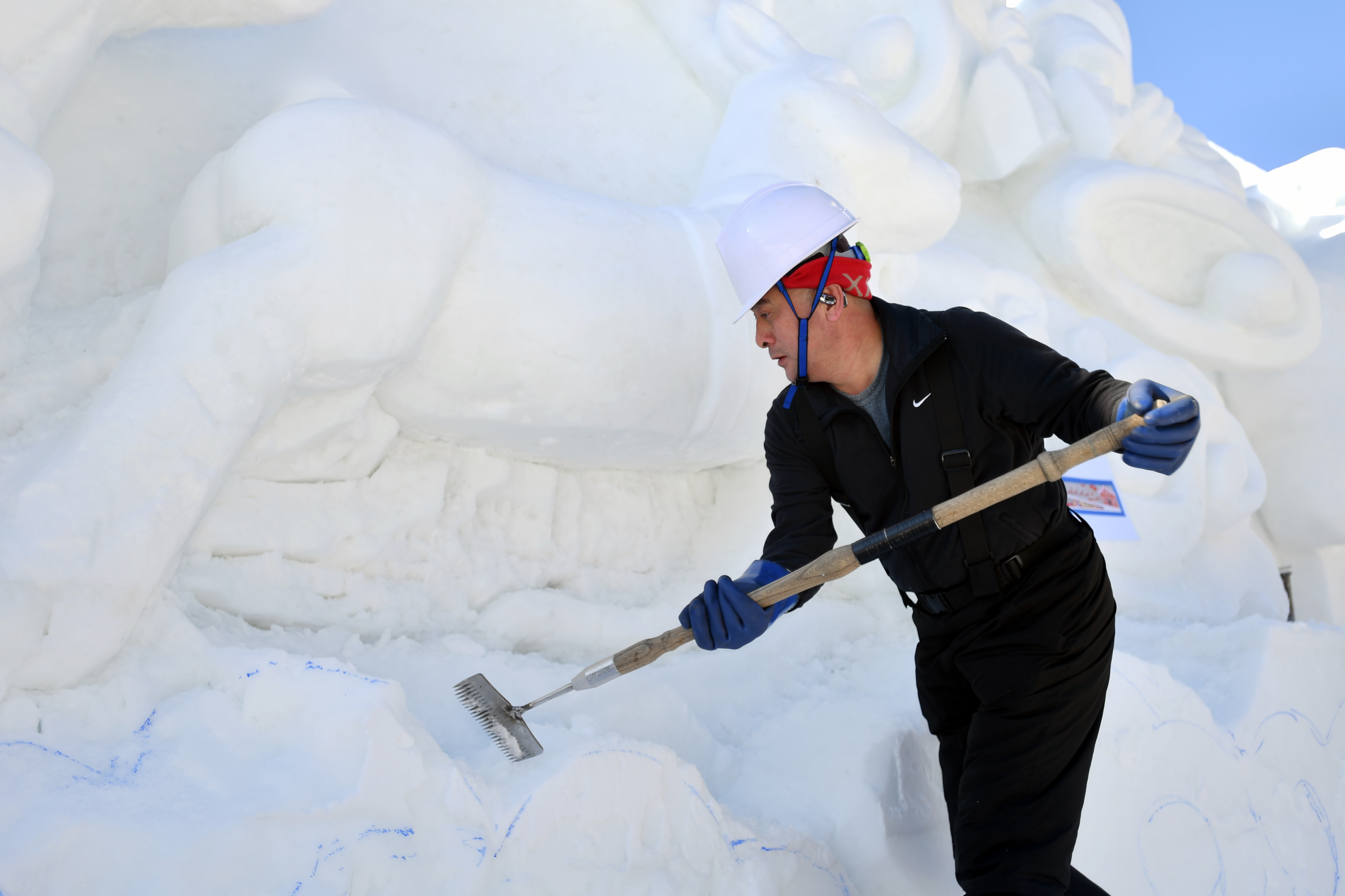 2025년 마지막 날인 31일, 화천군 화천읍 화천산천어축제장에서 축제 개막 열흘을 앞두고 거대한 눈조각 작품 조성이 한창 진행되고 있다. 2026 얼음나라 화천산천어축제는 새해 1월10일부터 2월1일까지, 23일 간 열린다.