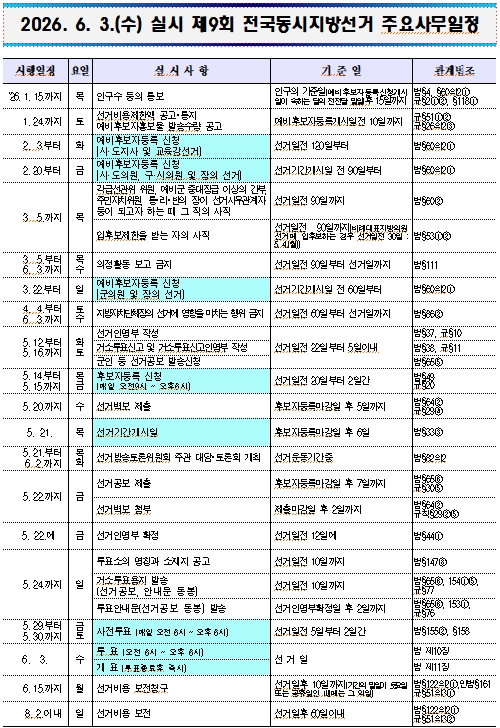 제9회 전국동시지방선거 주요사무일정 본문