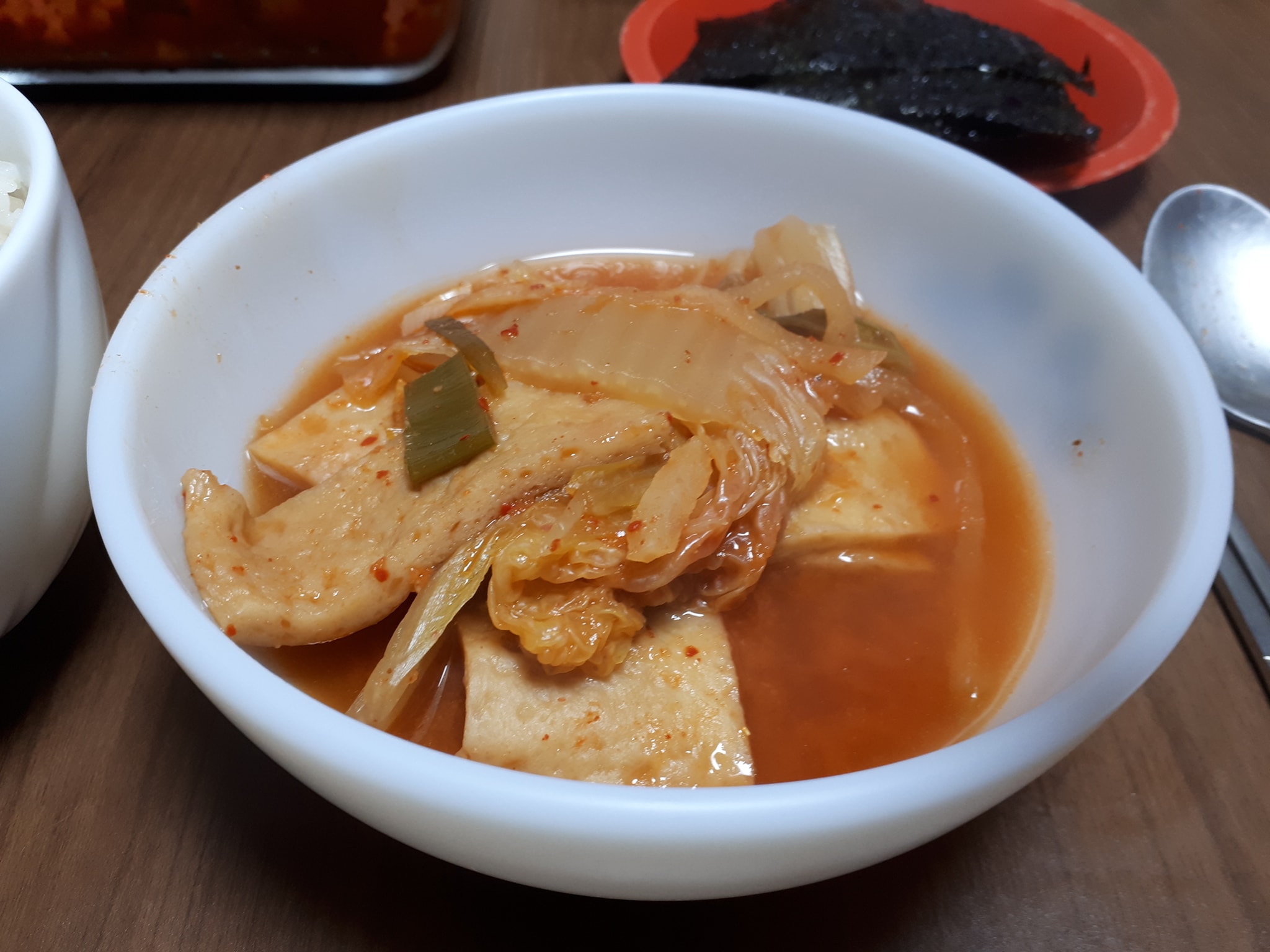 - 김치 1/2컵, 사각어묵 2~3장, 대파 1/3대