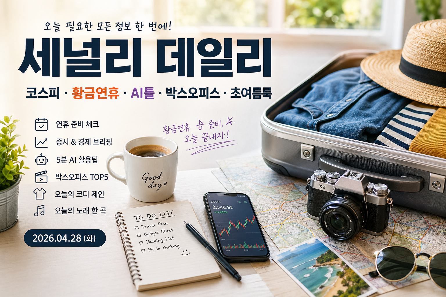 황금연휴·코스피 6615·박스오피스 TOP5·AI툴·초여름룩… 세널리 데일리 2026.04.28