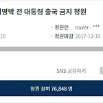 "이명박은 현재 법을 어겼다는 의심을 받고 있습니다. 이런 분이 서아시아로 출국한다니 말이 됩니까? 반드시 이명박에게 지금 당장 출국 금지령을 내리고 무죄판결 혹은 모든 벌을 받고 나온 그때 출국 금지를 해제시켜 주시기 바랍니다."청와대 국민청원 및 제안에 이명박 전 대통령에 대한 출국금지 청원이 11월 10일 게시되었다. 12일 현재 76900명을 넘어섰다.*https://www1.president.go.kr/petitions/31254?navigation=best-petitions : 청와대 홈피 주소김관진 국방장관이 군댓글 공작 혐의로 11일 검찰에 구속되면서 이명박 전 대통령에 대한 수사 필요성은 점점 증대하고 있다. 따라서 이명박 전 대통령 출국금지 청원에 대한 국민적 관심도 증폭되는 것으로 보..