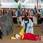 G-1년 기념 올림픽 페스티벌 1시군 1대표 문화예술행사 중 강릉시의 대표 공연 ‘단오향’이 2월 10일(금) 단오문화관 공연장에서 열렸다. ‘단오향’은 강릉의 대표축제인 단오이야기를 중심으로 한 마당놀이 형식의 창작공연이다. ]