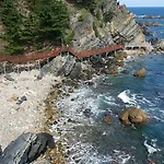 대한민국 최고 해안산책로 ‘바다부채길’“바다부채길”은 천연기념물 제437호인 해안단구를 따라 혹은 좀 더 엄밀히 말하면, 해안단구의 기암괴석들과 바다 사이에 걸터앉은 해변 산책로이다. 강릉의 볼거리 1호로 그 길을 선택한 것은 단순히 부채바위나 투구바위 같은 기암괴석들과 어우러진 아름다운 바다 풍경 때문이 아니다. 그 선택에는 ‘우연을 가장한 필연’이 깔려 있다. 우선 바다부채길이 최장 해안 단구로서 지질학적 가치를 지닌 자연 유산이자 선사시대의 문화유산이라는 상징성을 품은 심곡-정동진 해안단구와 밀접하게 관련된다는 점이다.