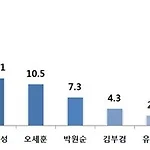 더민주 차기 원내대표 적합도 홍영표 13.0%, 우상호 11.2%, 민병두 6.2% 더불어민주당의 차기 원내대표로 누가 가장 적합한지 질문한 결과 홍영표라는 응답이 13.0%로 가장 높게 나타났다. 이어서 우상호가 11.2%로 오차범위 이내이며, 민병두 6.2%, 우원식 3.7%, 조정식 2.9% 이 뒤를 이었다. 기타/잘모름이 62.9%로 나타나 아직 경쟁에 불이 붙지 않았고 국민들에게 큰 관심을 끌고 있지 못함을 보여주고 있다. 홍영표라는 응답은 대전/충청/세종(16.6%), 30대(18.2%)에서 가장 높게 나타났으며, 반면, 부산/울산/경남(11.9%) 및 50대(16.6%), 60대 이상(10.8%)의 경우 우상호를 선택한 응답 비율이 더 높게 나타났다. 더불어민주당 지지층만을 대상으로 보았을 ..