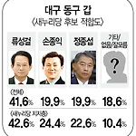 [설날특집] 20대 총선 판세 여론조사 [8] '진박 전쟁' 대구 동구-3자 대결, '진박' 정종섭 열세온라인 기사 2016.02.04 16:29 [일요신문] -'새누리당 후보 적합도' 류성걸 41.6%, 손종익 19.9%, 정종섭 19.9% [대구 동구갑] 별들의 전쟁보다 무서운 것이 ‘박들의 전쟁’이라 했던가. 공천을 둘러싸고 달구벌의 분위기가 심상찮다. 동구갑에서 류성걸 새누리당 의원과 정종섭 전 행정자치부 장관이 화끈한 맞대결을 펼칠 예정이기 때문. ‘진박 TK 공략의 선봉장’ 정 전 장관은 일찌감치 예비후보 등록을 끝내고 ‘진박연대’를 이끌고 있다. 여기에 ‘진박’을 자처한 손종익 상생정치연구원장도 최근 출마 선언을 했다. 류성걸, 정종섭, 손종익, 세 사람의 새누리당 후보적합도 조사에서 응답자..