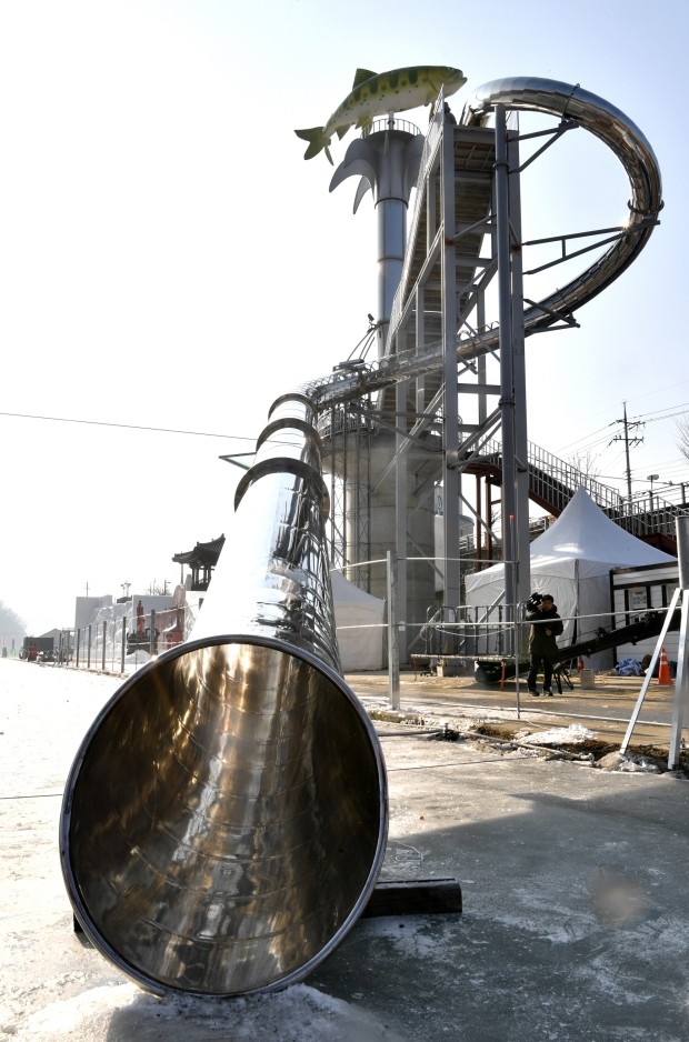 2020 화천산천어축제장에 설치된 야외 아이스 봅슬레이가 27일 축제 개막을 앞두고 벌써부터 화제다.