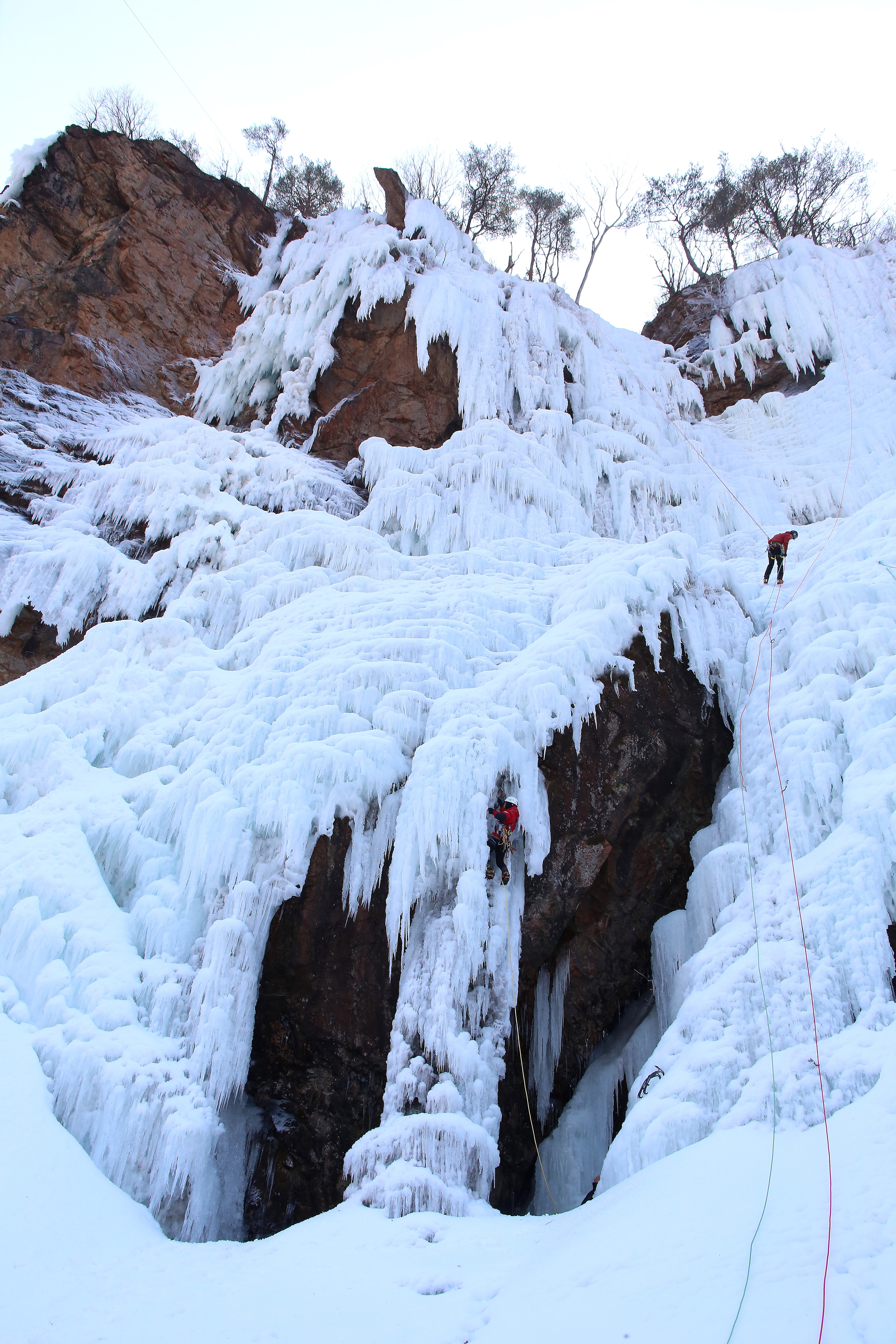 인제군 용대리 매바위 폭포가 최근 이어진 한파로 인해 거대한 빙벽을 이루며 이를 즐기기 위한 빙벽 동호인들의 발길이 이어지고 있다.