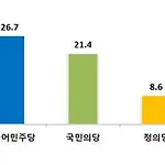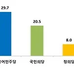 더불어민주당 48.3%, 자유한국당 11.4%한국사회여론연구소(KSOI/http://www.ksoi.org)가 지난 12월 8일~ 9일에 걸쳐 전국 유권자 1047명을 대상으로 실시한 정당지지도 여론조사에서 더불어민주당이 지난달보다 3.6%P 하락했지만 48.3%를 기록, 정당지지도 1위를 이어가고 있는 것으로 나타났고, 자유한국당은 지난달보다 소폭 상승한 11.4%를 기록해 2위로 나타났다. 다음으로 정의당은 6.6%로 지난달보다 소폭 상승했으며, 2달 연속 정당지지도 3위를 기록했다.바른정당은 5.0%로 4위로 나타났으며, 통합과 연대에 대한 이견과 박주원 최고의원 파문으로 내홍을 겪고 있는 국민의당은 지난달에 이어 이번달에도 지지도가 소폭 하락해 4.6%를 기록, 정당지지도 최하위로 조사되었다. ‘..