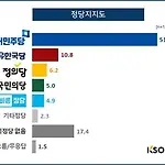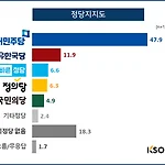 더불어민주당 48.3%, 자유한국당 11.4%한국사회여론연구소(KSOI/http://www.ksoi.org)가 지난 12월 8일~ 9일에 걸쳐 전국 유권자 1047명을 대상으로 실시한 정당지지도 여론조사에서 더불어민주당이 지난달보다 3.6%P 하락했지만 48.3%를 기록, 정당지지도 1위를 이어가고 있는 것으로 나타났고, 자유한국당은 지난달보다 소폭 상승한 11.4%를 기록해 2위로 나타났다. 다음으로 정의당은 6.6%로 지난달보다 소폭 상승했으며, 2달 연속 정당지지도 3위를 기록했다.바른정당은 5.0%로 4위로 나타났으며, 통합과 연대에 대한 이견과 박주원 최고의원 파문으로 내홍을 겪고 있는 국민의당은 지난달에 이어 이번달에도 지지도가 소폭 하락해 4.6%를 기록, 정당지지도 최하위로 조사되었다. ‘..